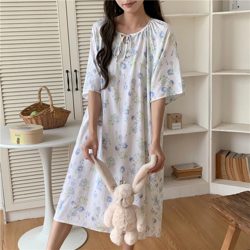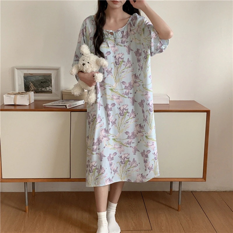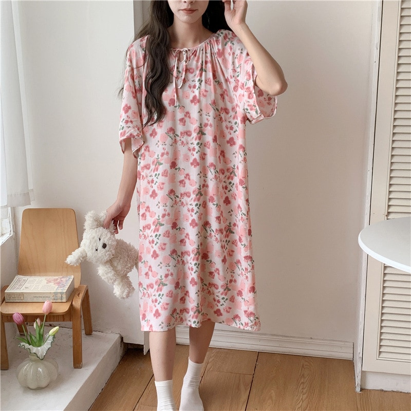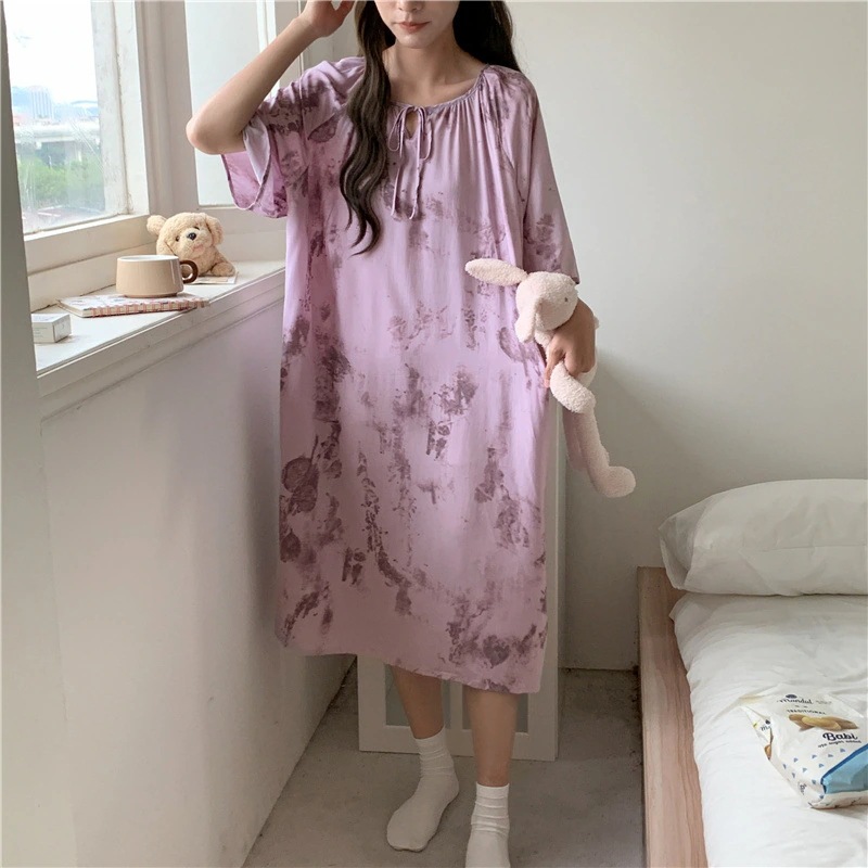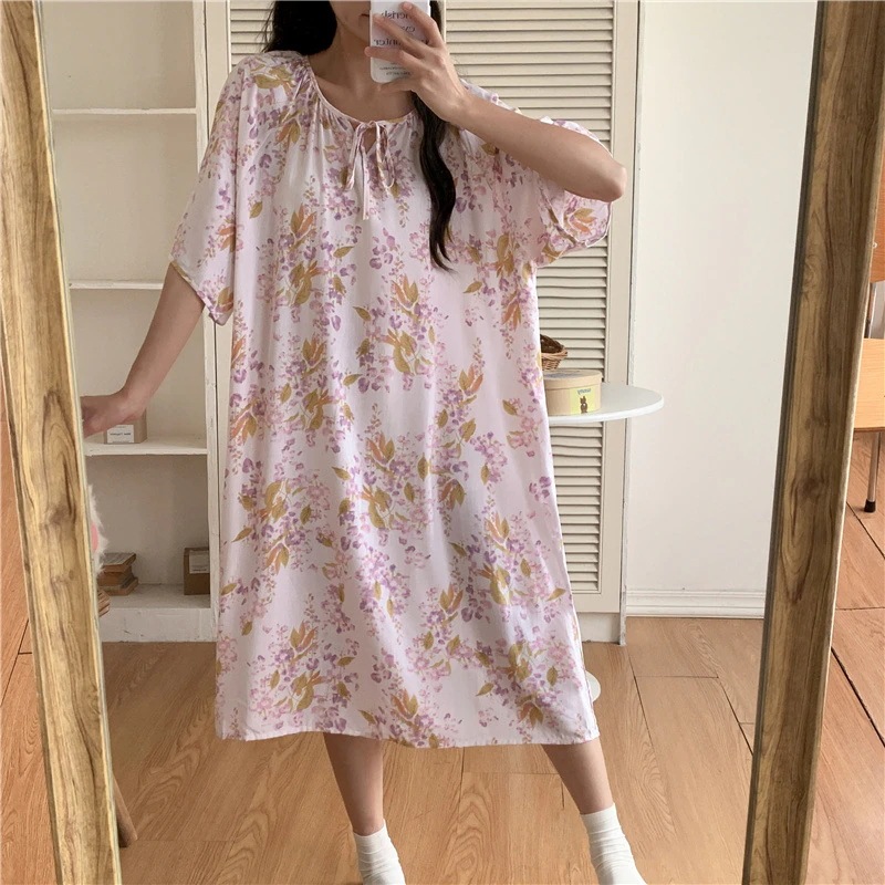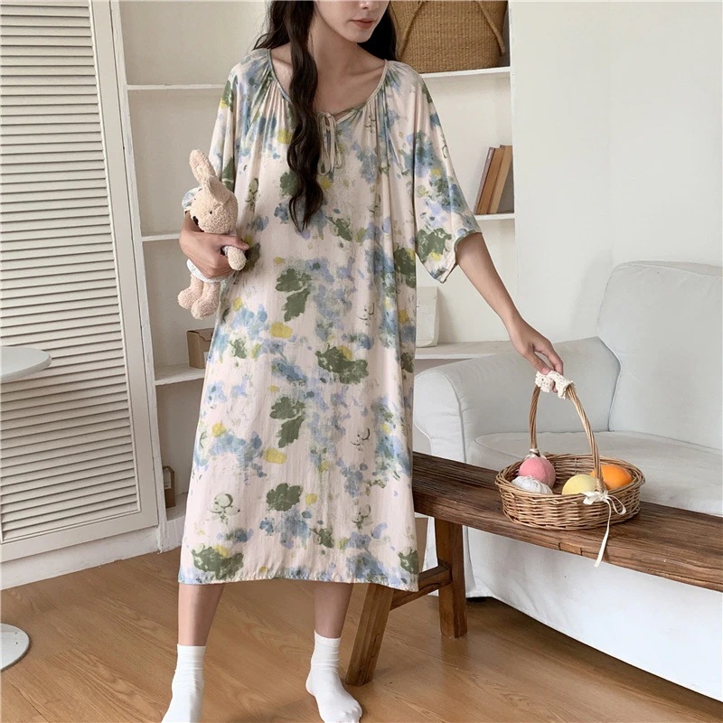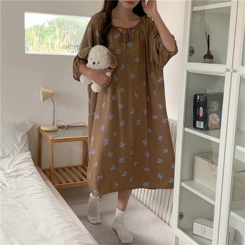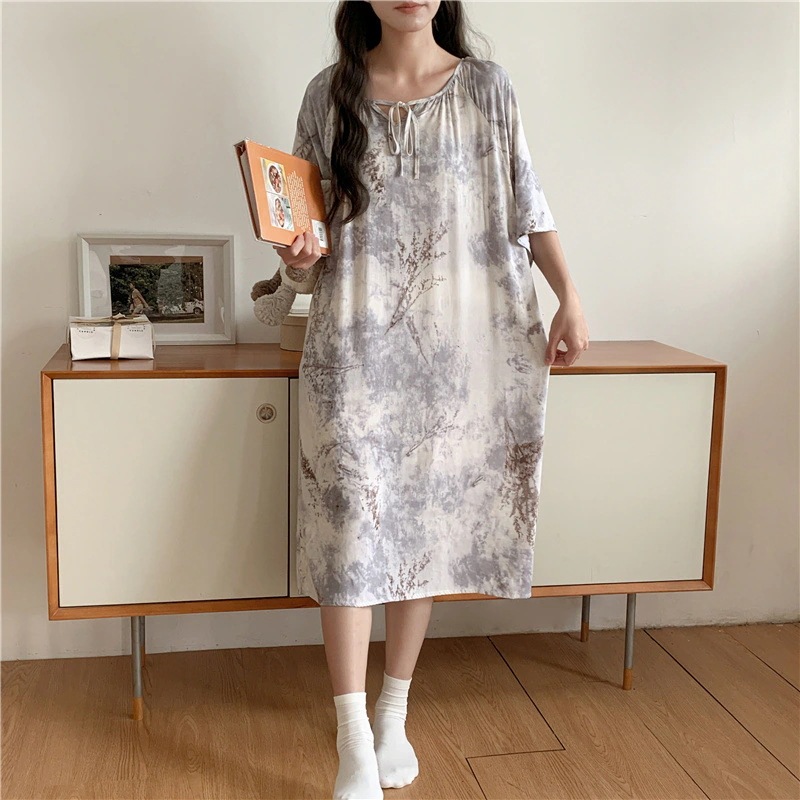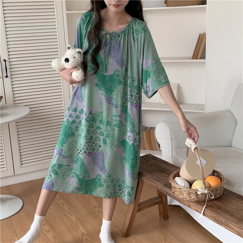 新作の女性用春夏の大型サイズ綿シルク素材の寝間着 中国紅のドット柄ドレス上品なロングスカート綿シルク素材の寝間着と薄手のホームウェアセット
