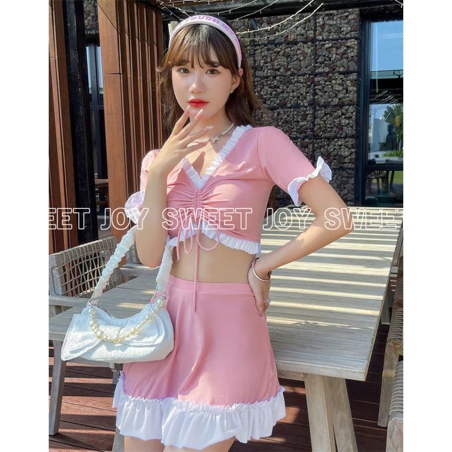 水着 体型カバー オトナ女子 セパレート ピンク ブルー 夏 水泳服 海水浴 ノンワイヤー 人気沸騰 パッド付き オトナ女子 おしゃれ 露出控えめ お腹 お尻 カバーアップ や