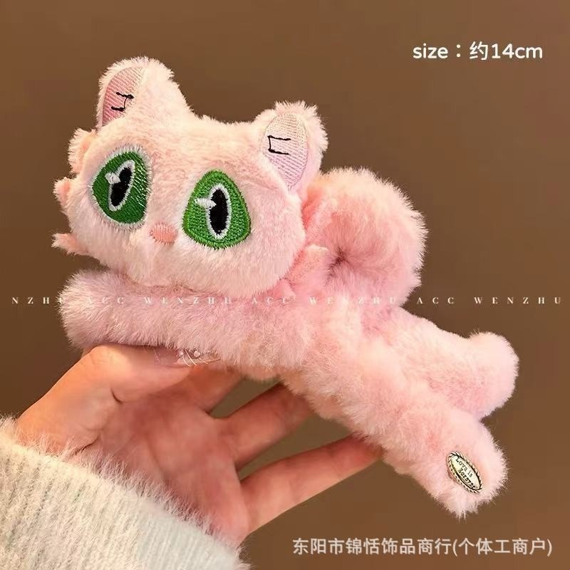 秋冬のふわふわ立体猫型ヘアクリップかわいいヘアアレンジ用cmシャーククリップ後頭部用ヘアクリップ