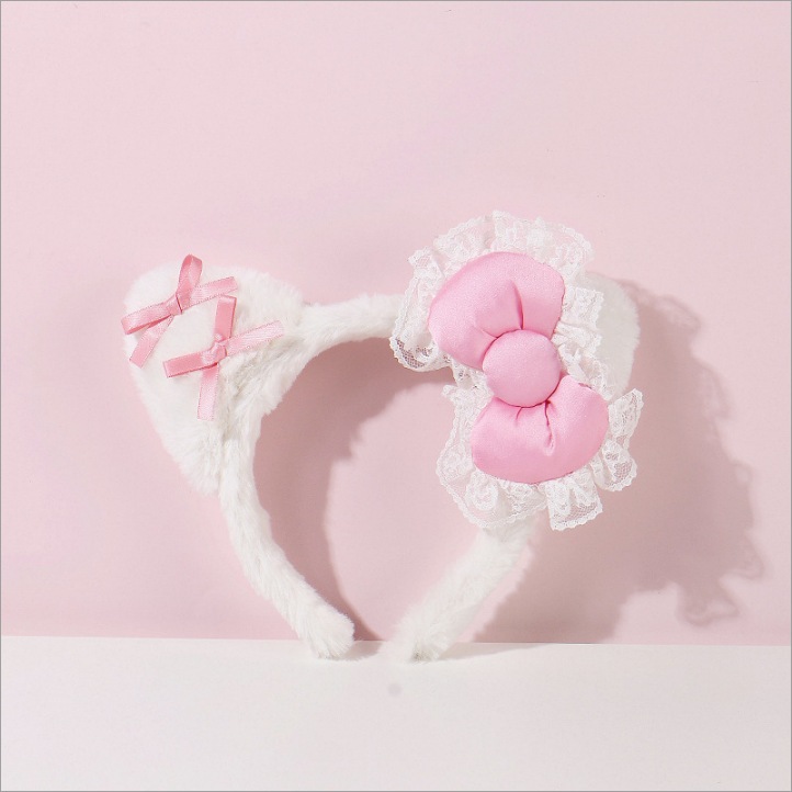 レースのかわいい猫のヘアバンド秋冬のふわふわヘアバンドヘアピン女の子用ヘアアクセサリーレースのヘアバンドヘアアクセサリー