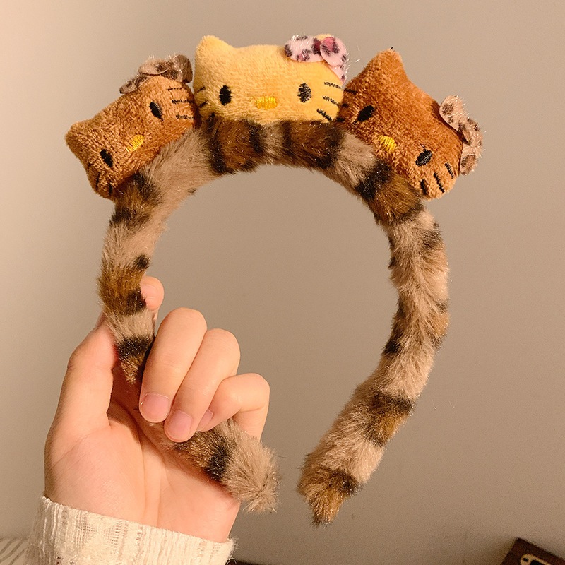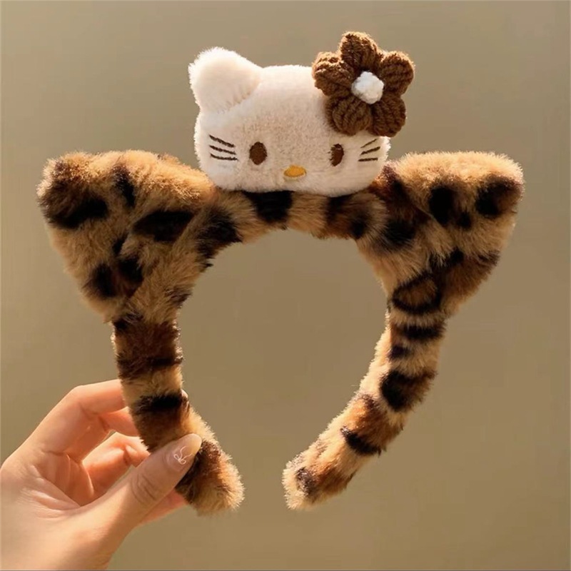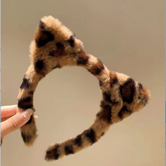 ヒョウ柄のふわふわ洗顔用ヘアバンド女性用秋冬かわいい冬用リボンヘアバンド滑り止めヘアクリップ