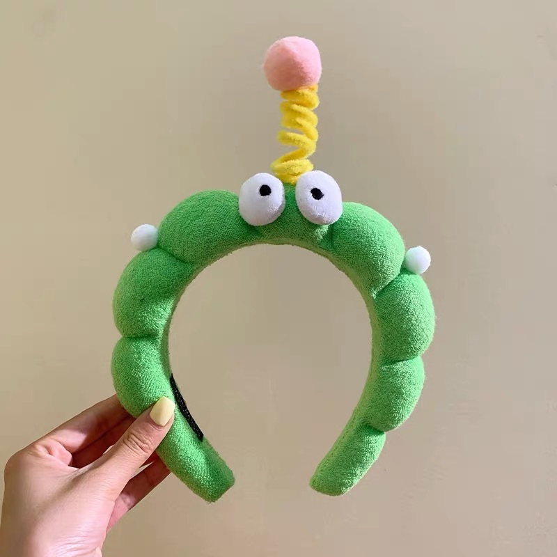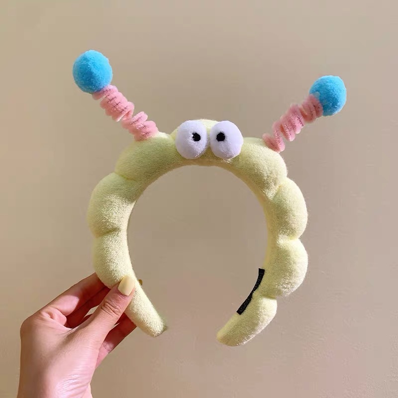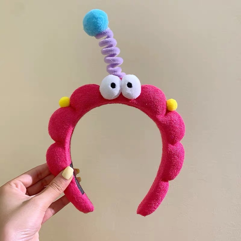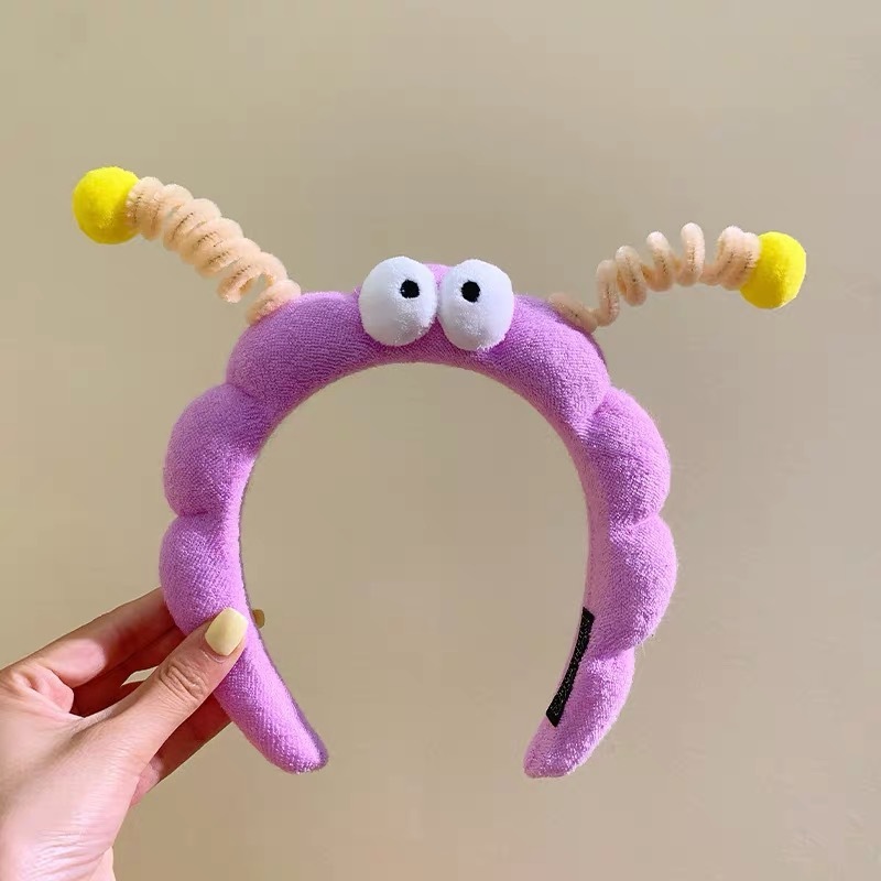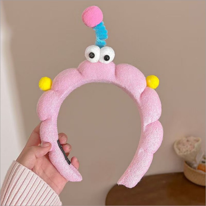 かわいいカートゥーン風の大きな目のモンスターねじりヘアバンド高頭頂部向けのおもしろ洗顔用ヘアバンド高頭頂部用ヘアクリップ