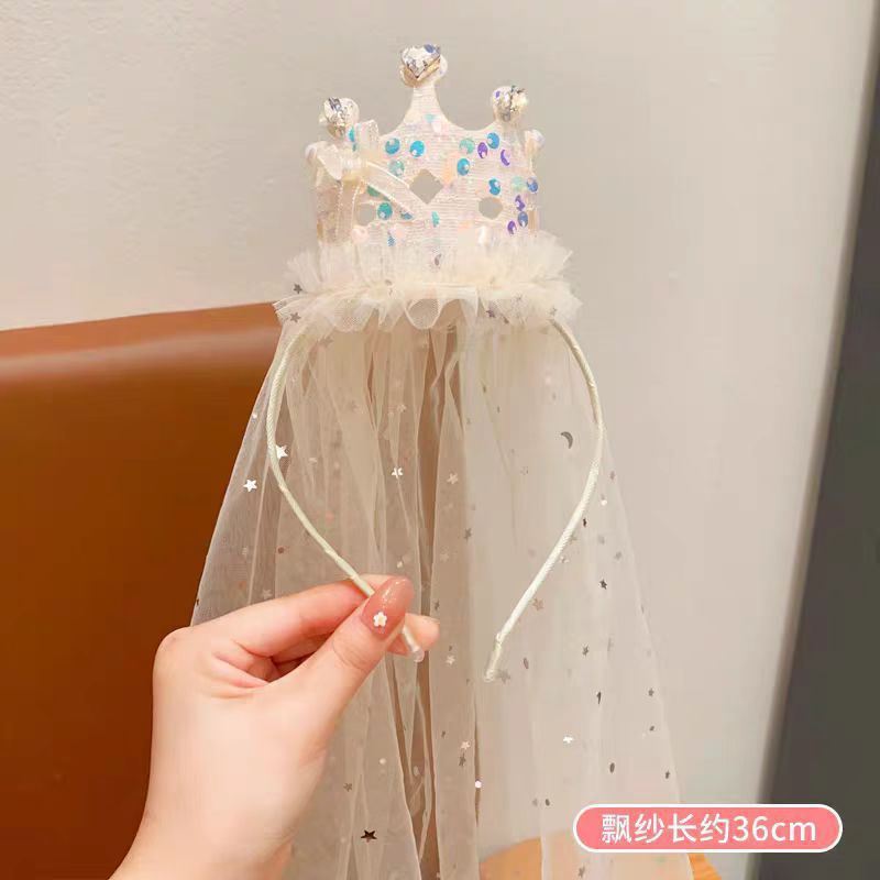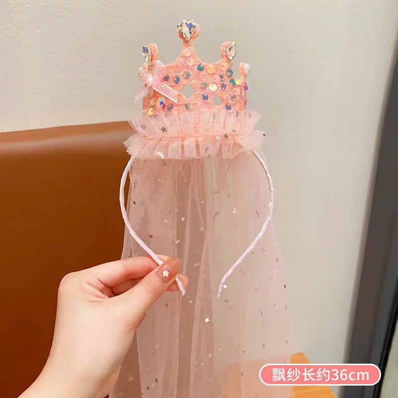 プリンセスクラウンベールヘアバンド誕生日パーティー用ヘアピンキラキラ輝くスパンコールとダイヤモンドをあしらった女の子用ヘアアクセサリー写真撮影用雰囲気づくり