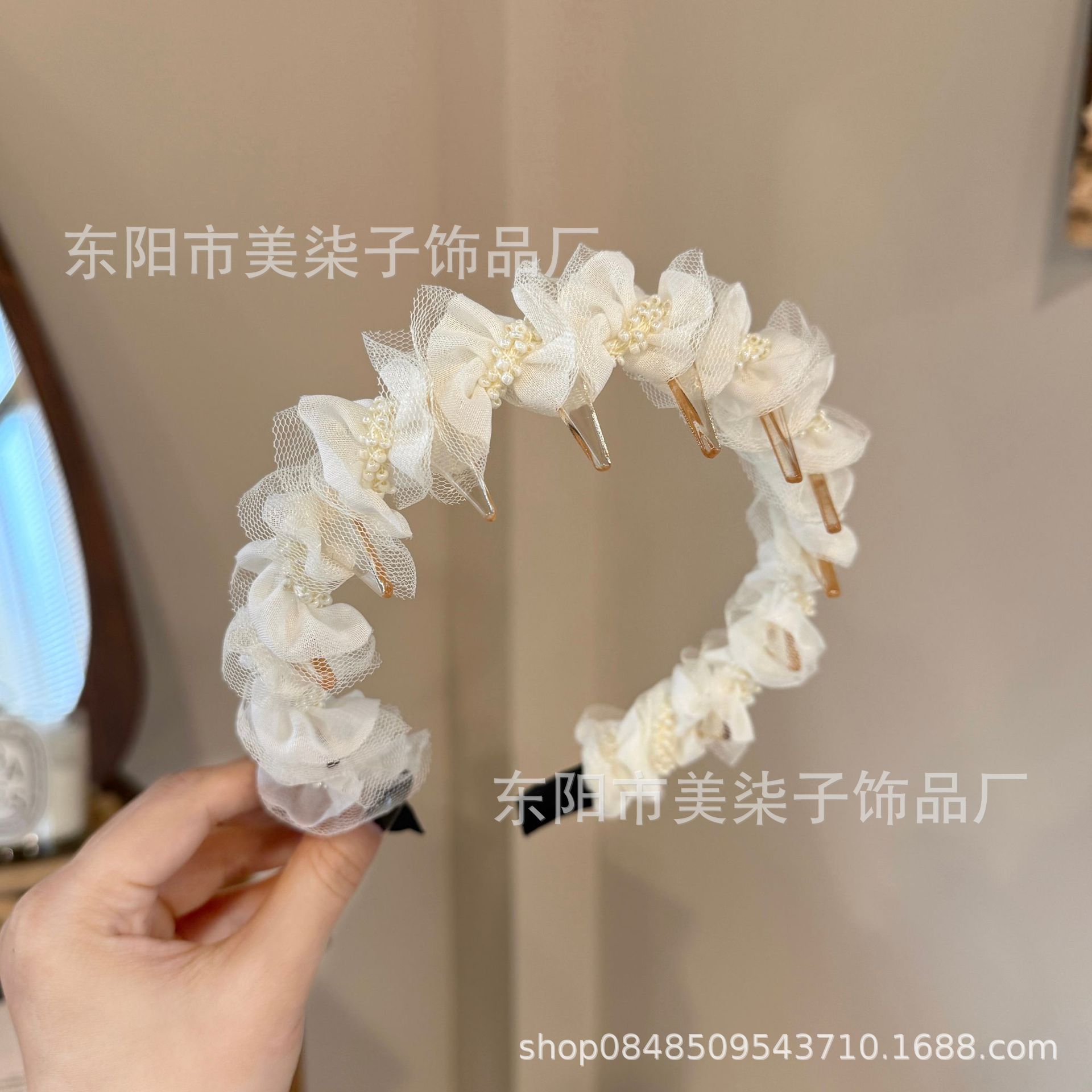 甘いメッシュヘアバンドプリーツ加工の高級感のあるヘアバンド滑り止めヘアバンド高めの頭頂部に合う春夏のヘアアクセサリー