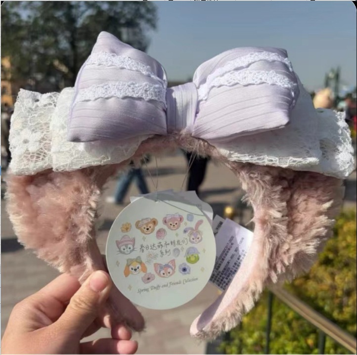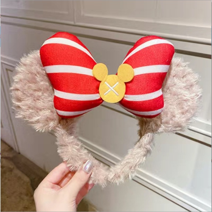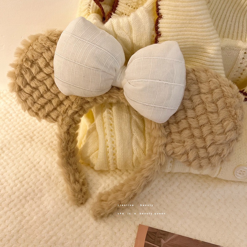 かわいい格子柄リボン付きクマのぬいぐるみヘアバンド秋冬小顔効果外出用多目的ヘアアクセサリー