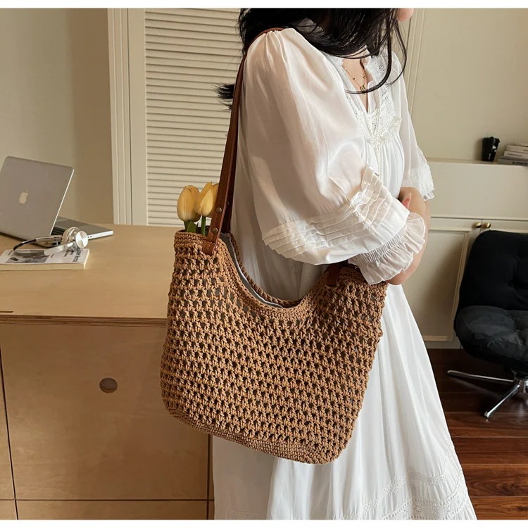 【夏限定】メッシュ編み 大容量 斜めがけ/手提げ兼用 ビーチバッグ旅行プールマリンスポーツ対応ショルダーバッグ