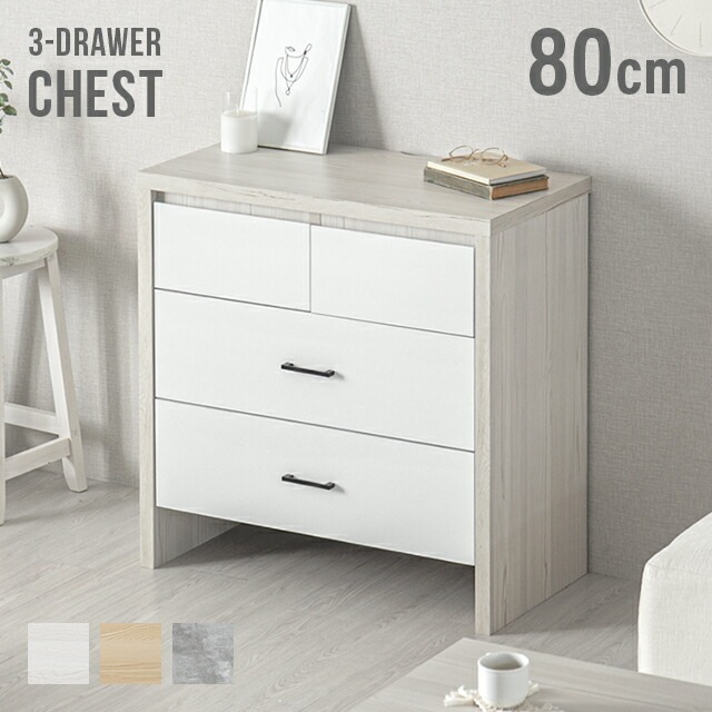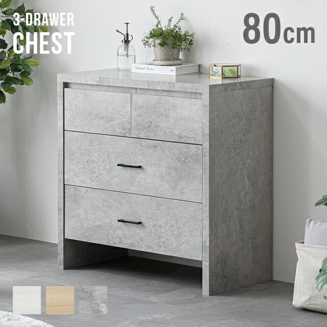 モダンデコチェスト 木製 北欧 キャビネット モルタル調 横幅80cm おしゃれ 3段 高脚 棚 引き出し たんす タンス シェルフ 箪笥 おもちゃ 収納 ツートン シンプル ワンルーム 一人暮らし