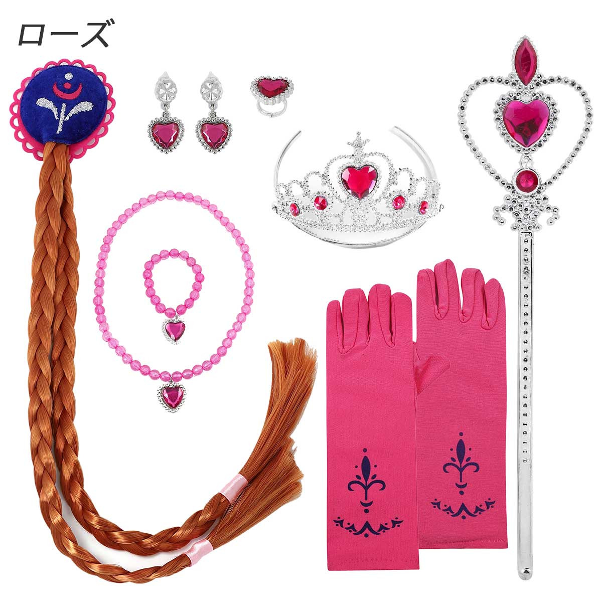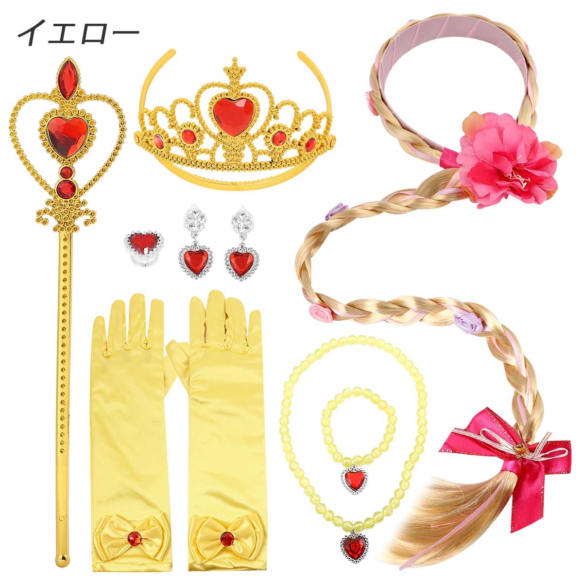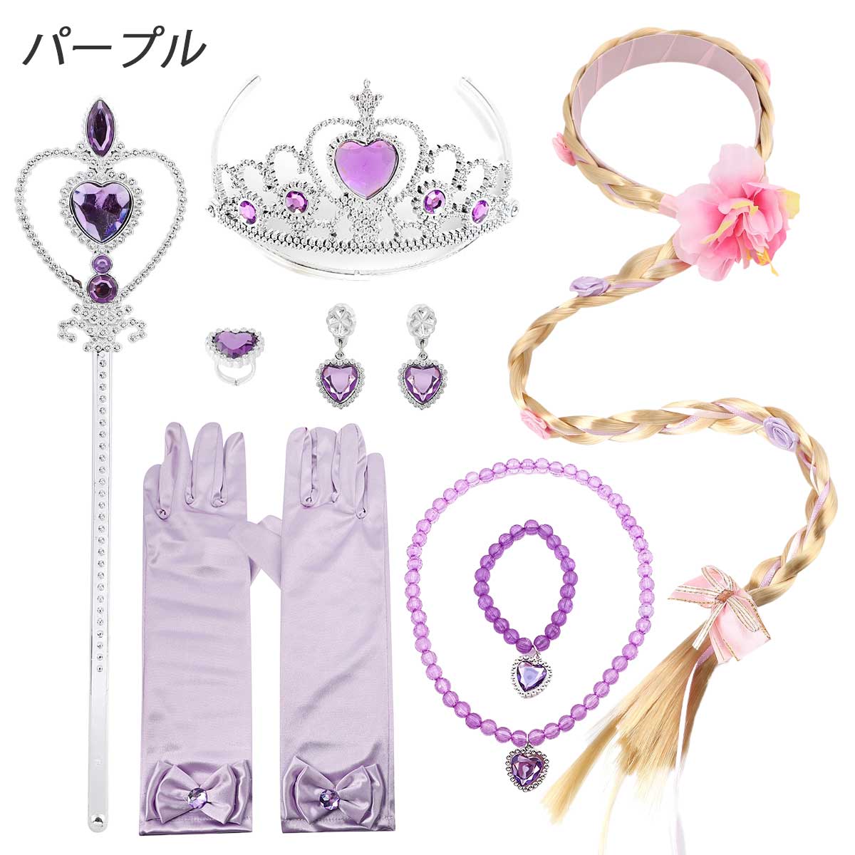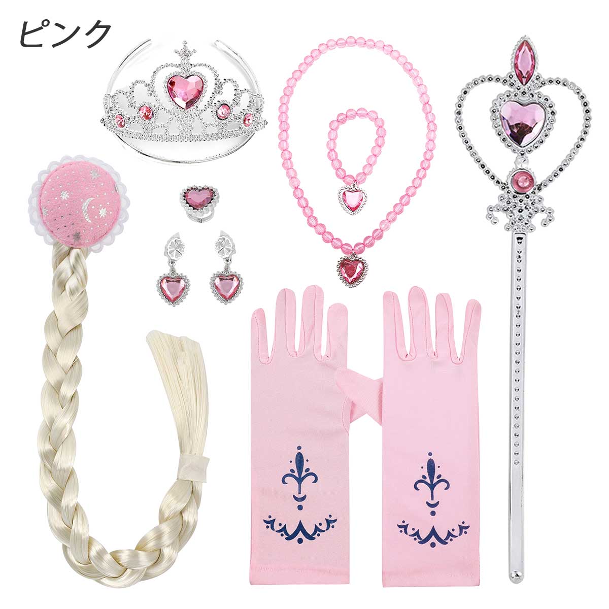 【3日間発送 赤字覚悟】【8点セット】プリンセス 小物 セット 子供 エルサ ティアラ キッズ アナ ラプンツェル ウィッグ オーロラ姫 ベル グローブ 女子