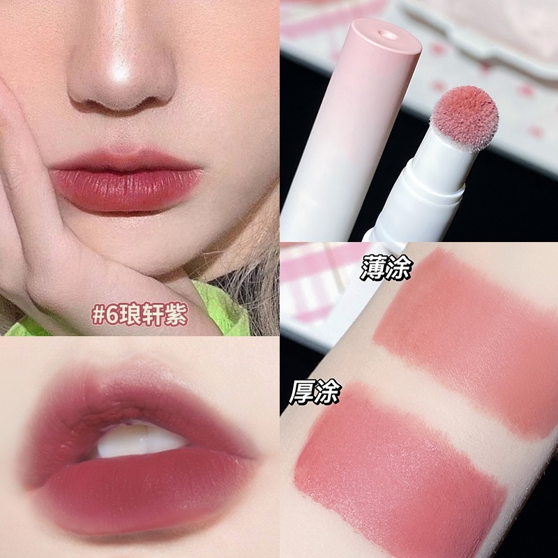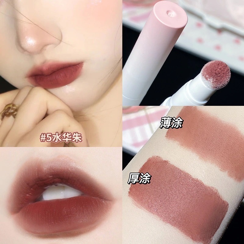 ZVEV【公式】 リップパウダークリーム 口红[フロッキー頭・より自然] メイク保持膜 6色リップグロス 可愛いリップ蜜 パーティー