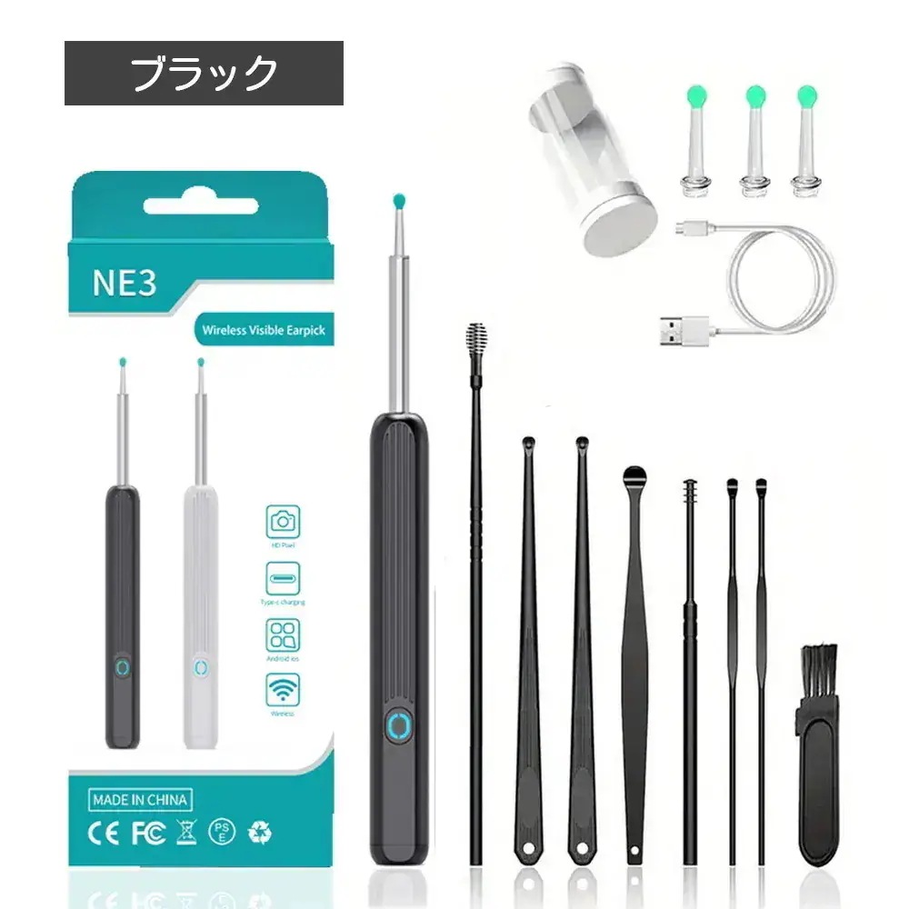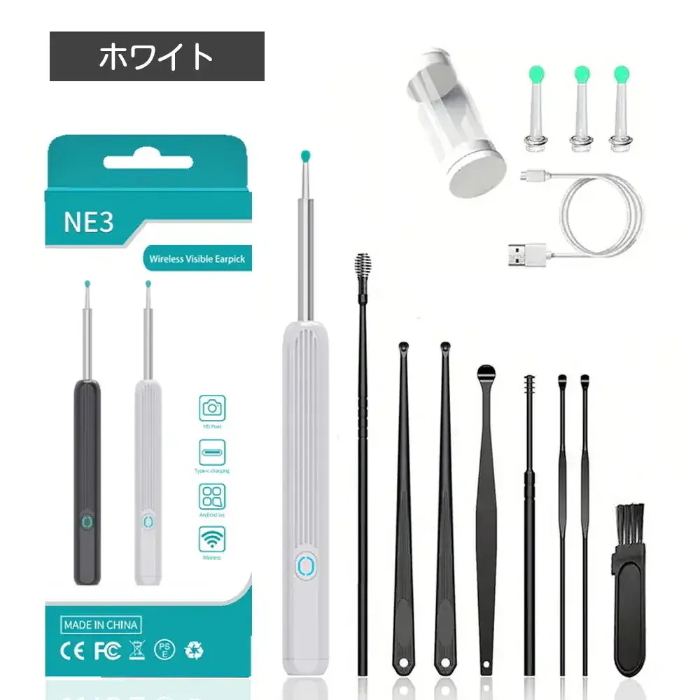 耳かき みみかき カメラ 付き 耳かき 耳鏡 内視鏡付き耳かき イヤースコープ 耳掃除 超小型レンズ 45mm 500万画素 WIFI接続 ステンレス LEDライト付き 無線 視覚耳取り US