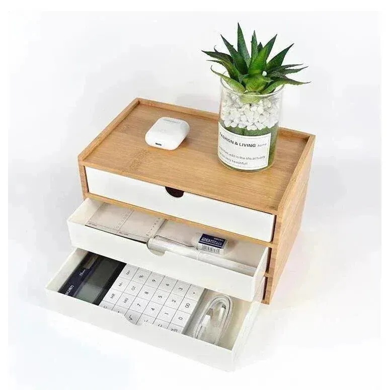 竹製 卓上収納 卓上チェスト 机上収納 机上ラックおしゃれ デスクトップ収納 ホワイトブラック 引き