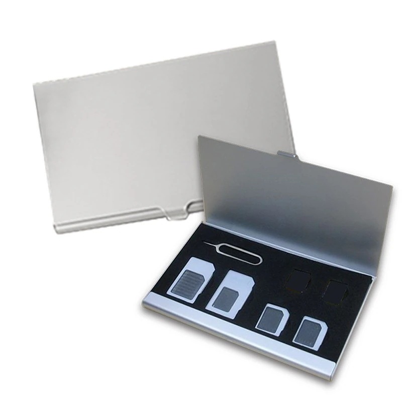 【2枚購入で100円OFF】nano SIM micro SIM 標準SIM 変換アダプター 5点セット 取り出すピン付き アルミ収納ケース SIMホルダー iPhoneXS Max XR スマホ