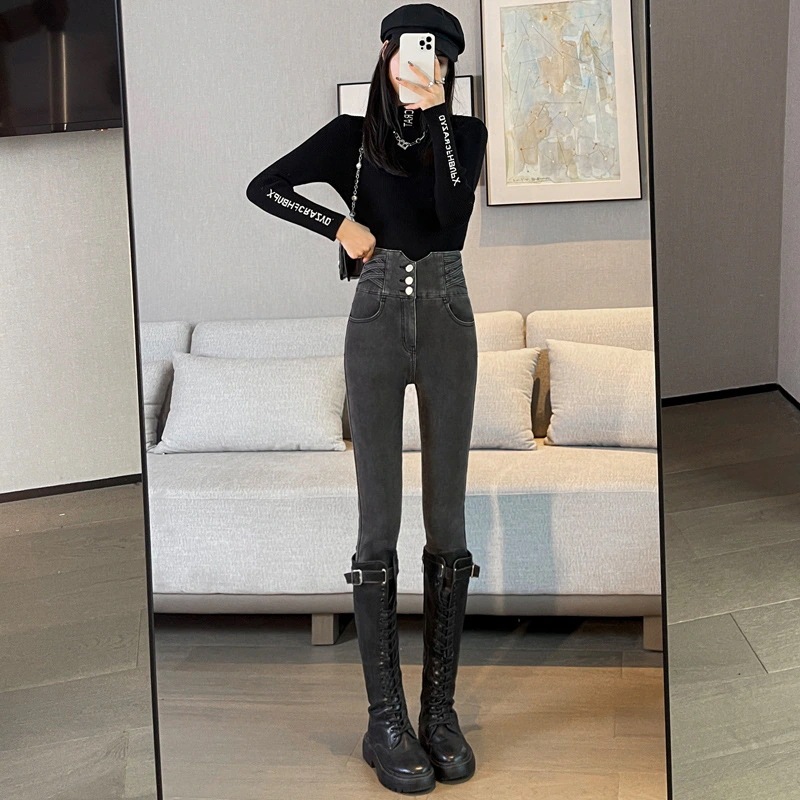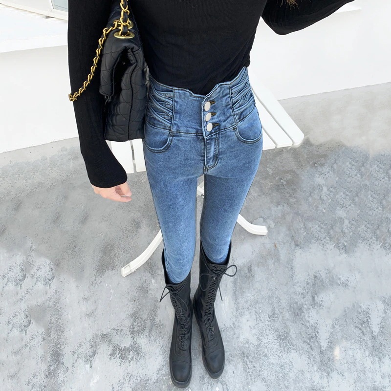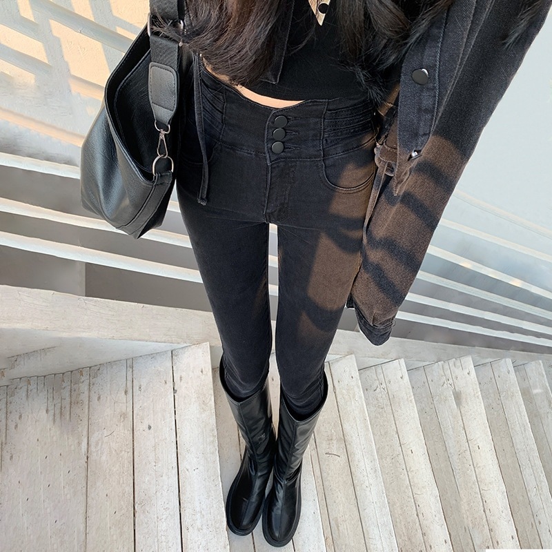 新 春 レディース ハイウエスト ジーンズ ブルー ブラック 体型カバー 着痩せ 大人気 韓国ファッション 美脚