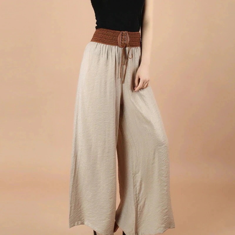 【メガ割り】ガウチョパンツ ワイドパンツ レディース パンツ 春 秋 夏 パンツ ボトムス 10分丈 ゆったり ウエストゴム ファッション 民族風 涼しい 光沢感 通勤