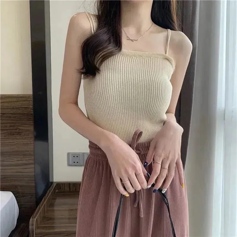 夏の準備!ノースリーブ夏 ノースリーブ ショート丈 インナー スリム ボトムス シャツバックキャミソール