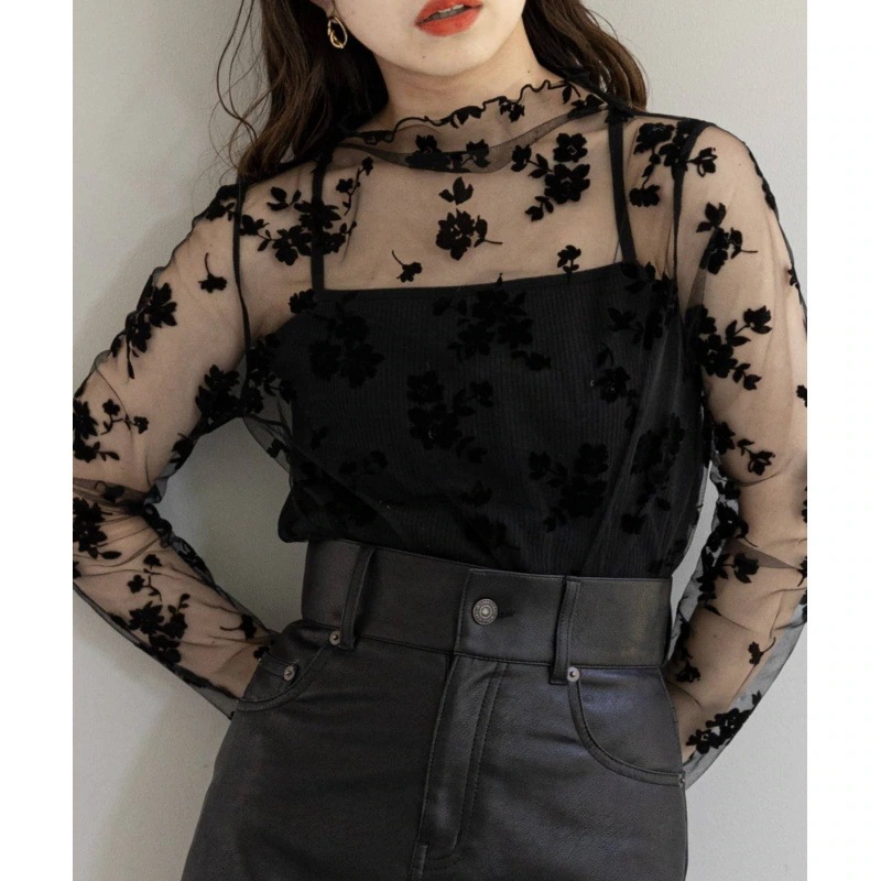 ブラウス 春人気!レトロ花柄 レース トップス セクシー透かし彫り 透け感 長袖ブラウス レディース 百掛け アンダーウェア着痩せシアーシャツ/UVカット /Tシャツ