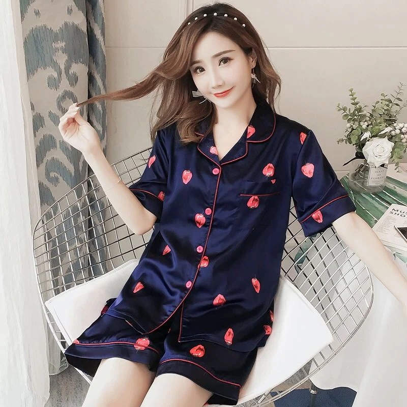 パジャマ ルームウェア夏のアイスシルク半袖2点セット本物のシルク学生の薄手のスーツを着て部屋着を着ることができます レディース 韓国ファッション