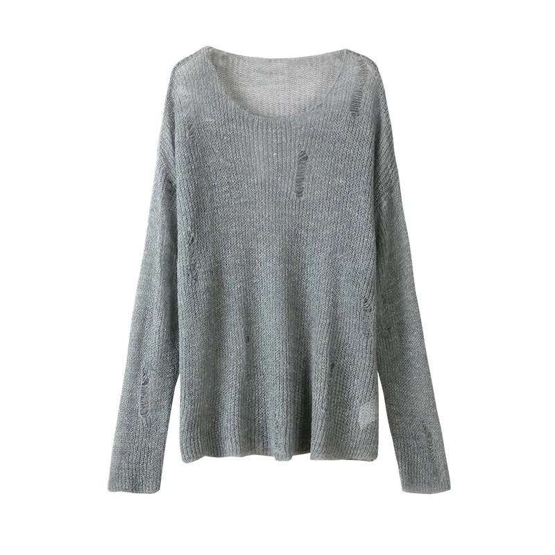 2024春夏 長袖 ニット プルトップスストリートカジュアエコルシルエットクルーネック加工色っぽ 女っぽ カジュアル 大人っぽ 上品 サイズフェミニンゆったりカジュアル レディースゆったり秋冬春