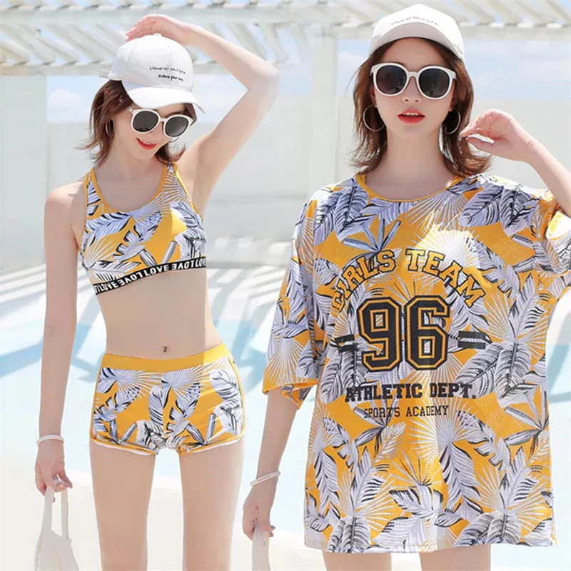 本日限定 防水スマホケース無料同梱 水着 三点セット 高校生 中学生 レディース プール ラッシュガード 体型カバー 大きいサイズ 母 おしゃれ セパレート リゾート セットアップ ママ水着 温泉