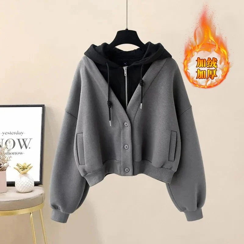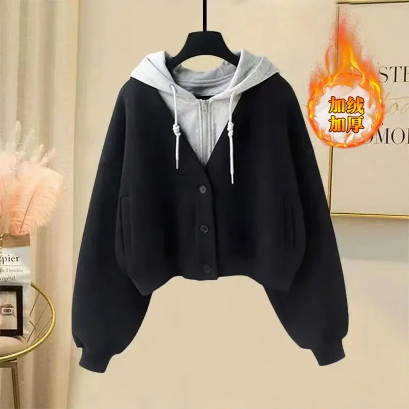 パーカー フェイク2枚のカーディガンジャケットを厚めにデザインしたカーディガン