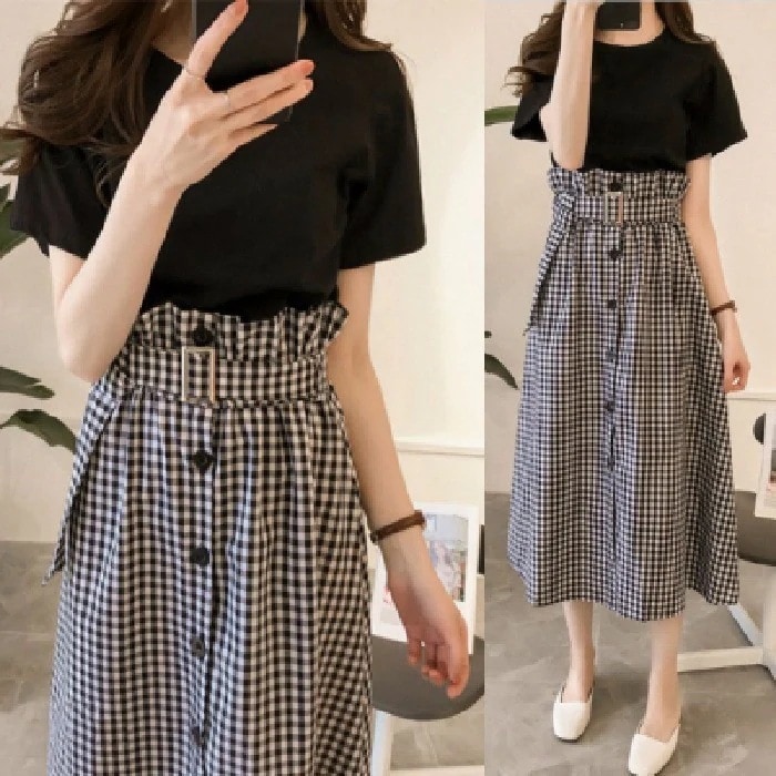上下2点セットTシャツ+スカート/ セットアップ/ レディース服/痩せたワンピー 韓国風 セットアップワンピース 新作 キレイめ 着痩せ