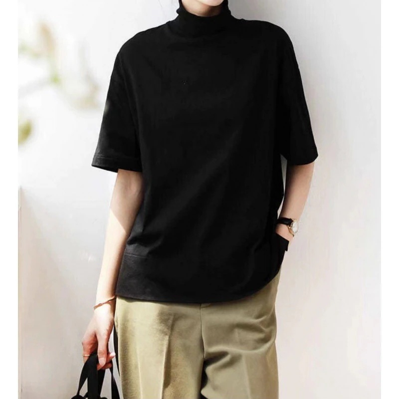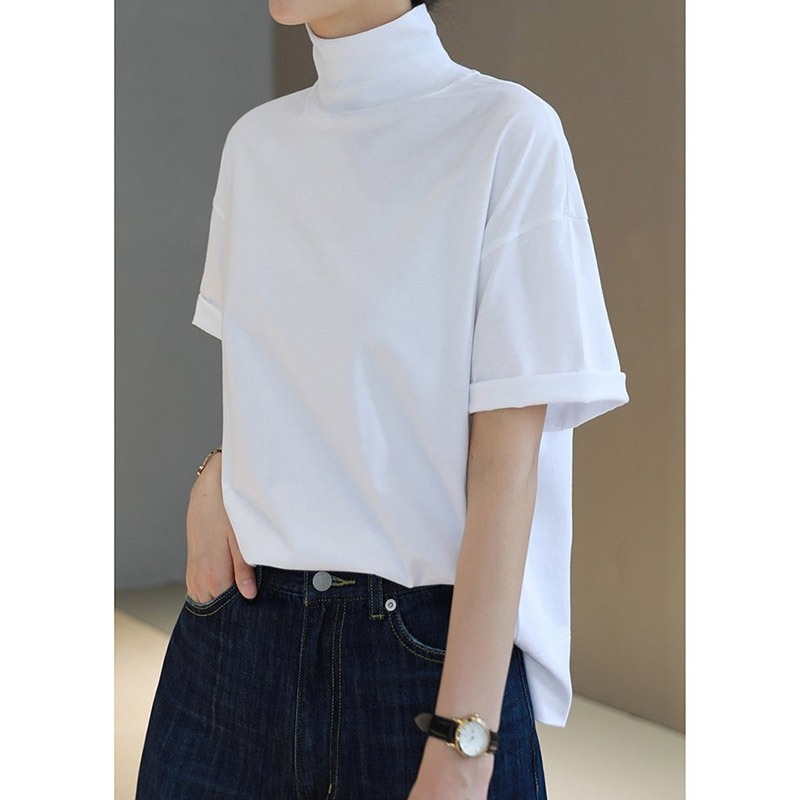 【綿100%】【期間限定激安販売】オーバーサイズTシャツ男女兼用冷房対策ハイネックTシャツ無地ゆったり下着タートルネック着痩せ半袖カジュアルトップスTシャツカップルシャツ