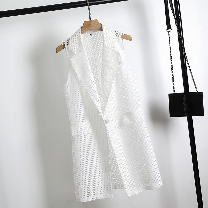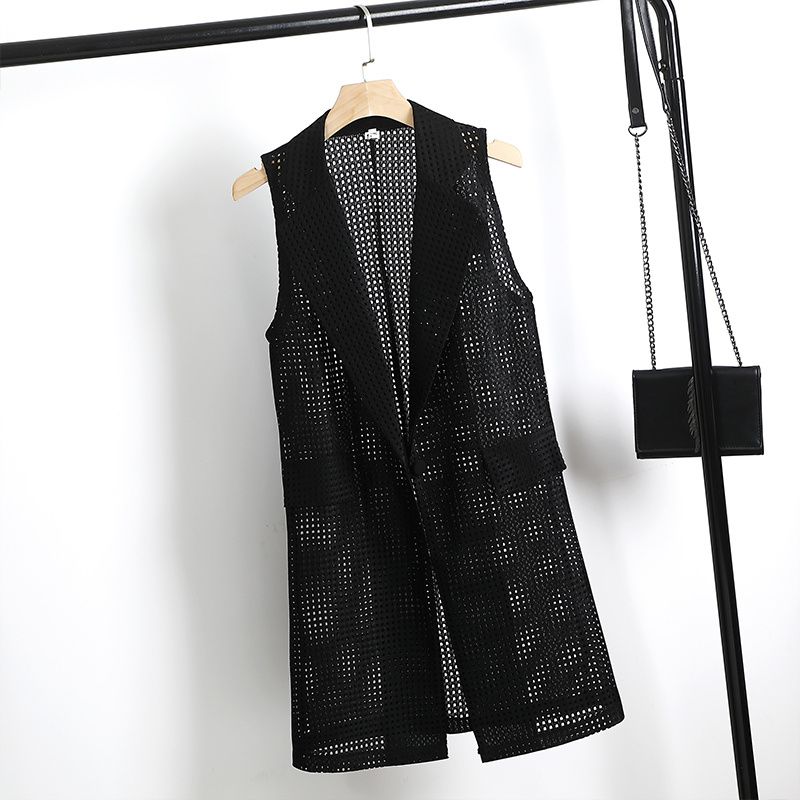 【2枚購入で 2oo円OFF!】2025夏 新作 おしゃれ メッシュ ベストコート 韓国風 すっきりシルエット ロング丈 ノースリーブ 透け感 大人可愛い 通勤 カジュアル ロングベスト アウター