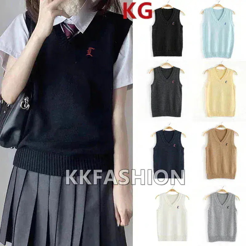 6タイプ レディース 女子高生 高校生 中学生 女の子 無地 薄手 厚手 Vネット ニット ベスト 通学 通勤 ニットコット セーラー服 制服 セーター プルオーバー カーディガン チョッキ