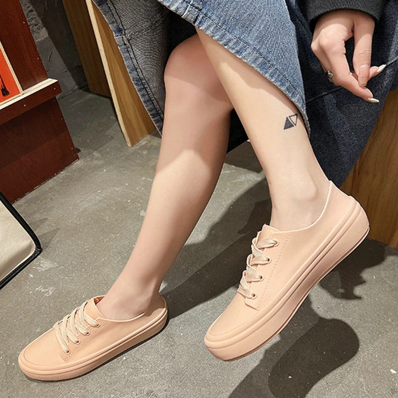 ファッション 可愛い レースアップ レインシューズ PVC 防水 スニーカー 梅雨対策 カジュアル レインシューズ