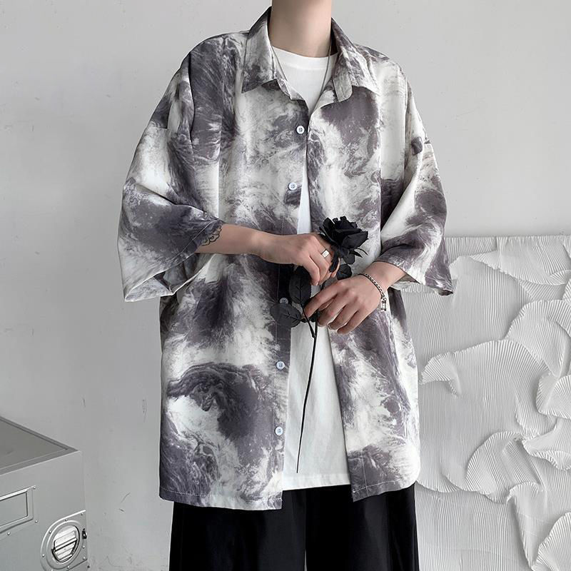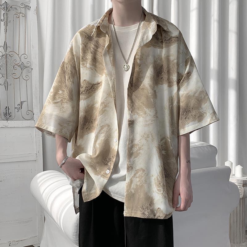 絞り染 ブラウス アウター メンズ サマー 薄い ワイシャツ ゆったり オールマッチ 半袖トップス