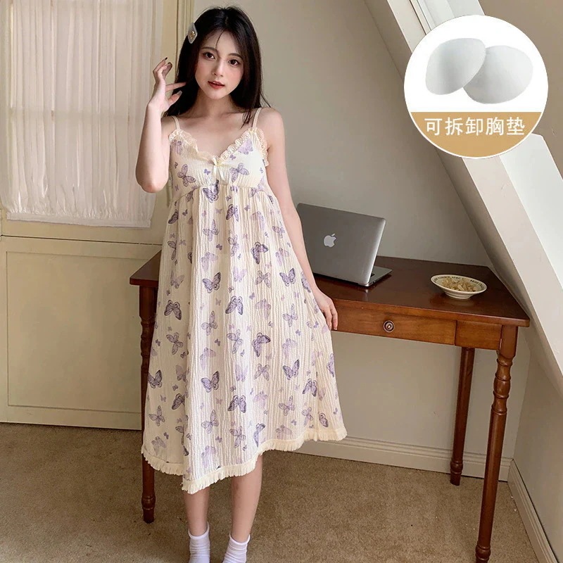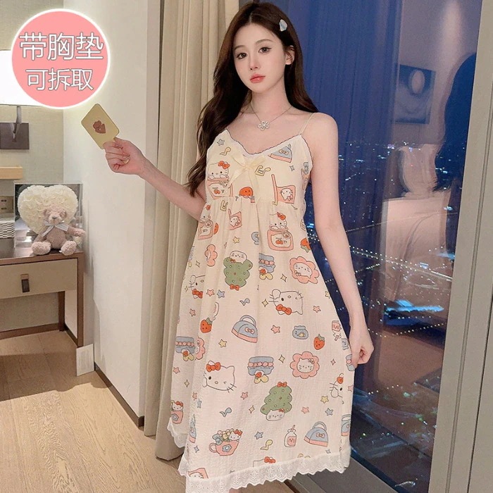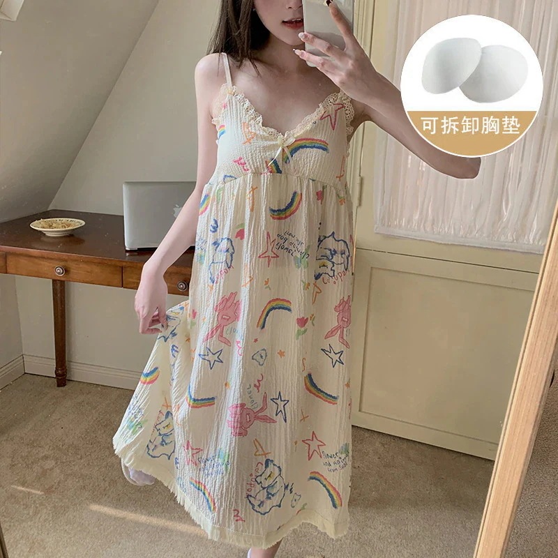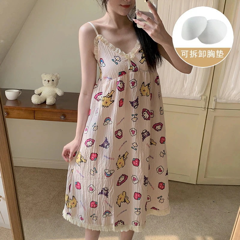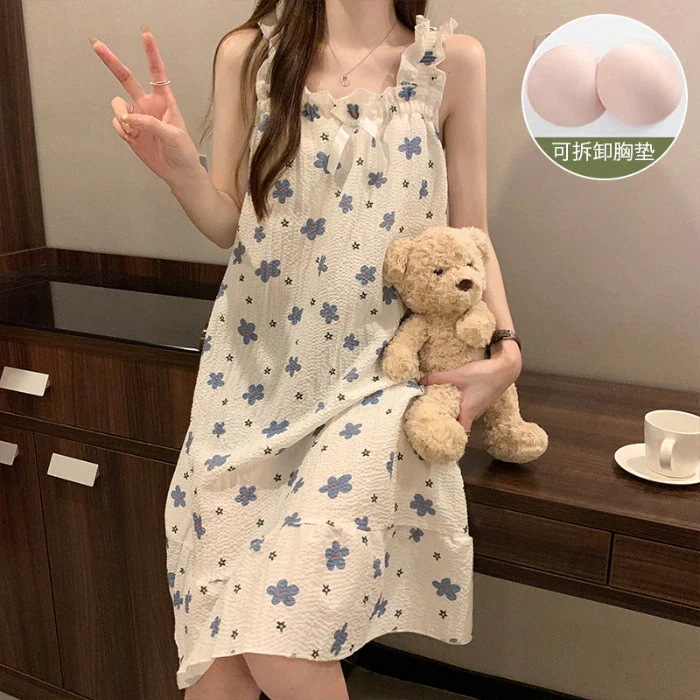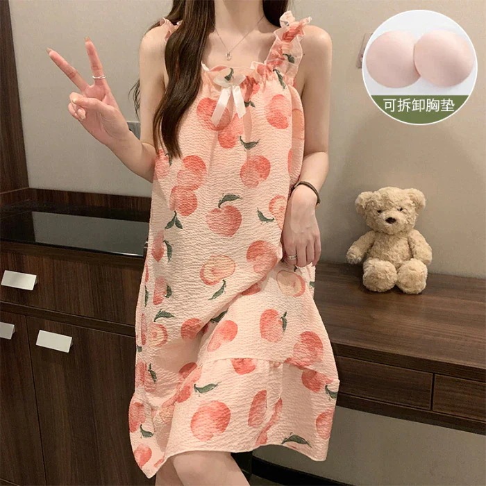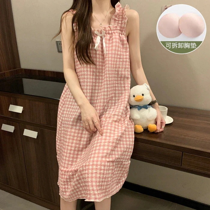 クッションホルターナイトガウンホームウェアとナイトウェア女性夏の甘い薄いセクション