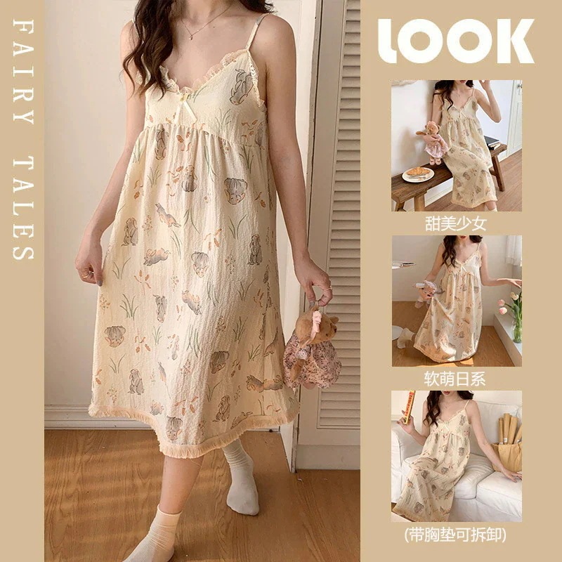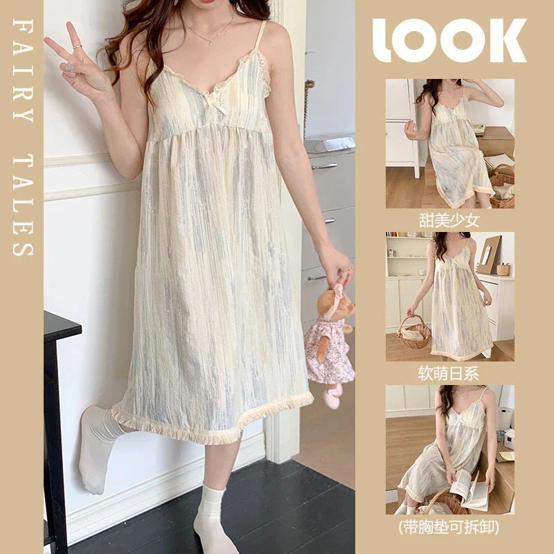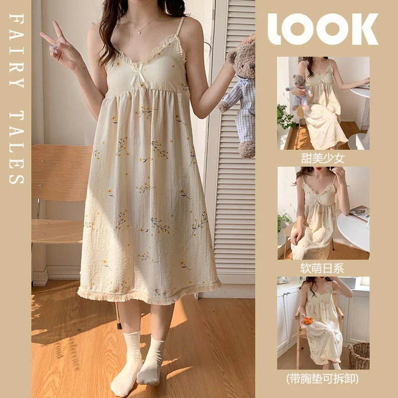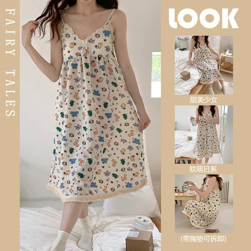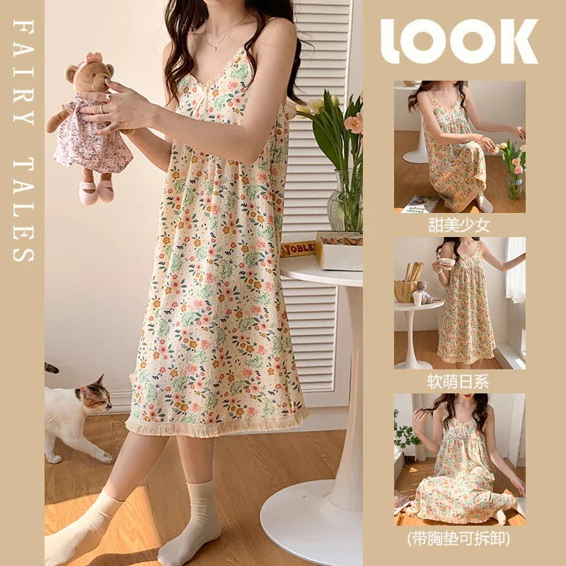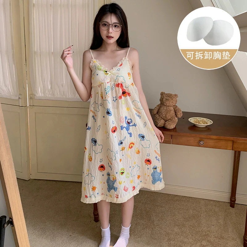 クッションホルターナイトガウンホームウェアとナイトウェア女性夏の甘い薄いセクション