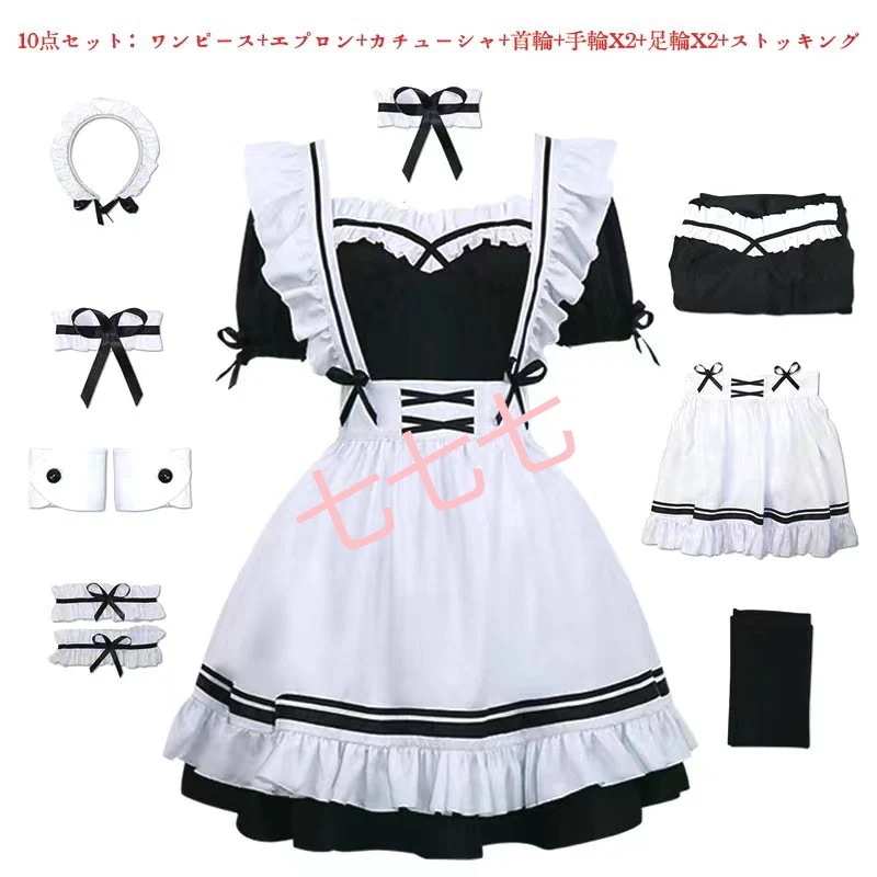 人気No.1!【本日限定】【新品追加】10点セット メイド服 可愛いロリータ 白黒メイド服 コスプレ ビッグサイズ メイド服/仮装