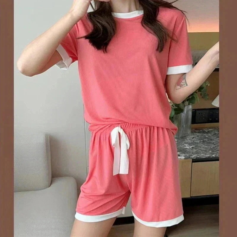 2枚3OO円OFF! 韓国ファッション涼感 部屋着 シンプル快適 ルームウェア セットアップ 夏パジャマお肌に優しい冷感パジャマ レディース半袖パジャマ二点セット ゆったりカジュアル大きいサイズ