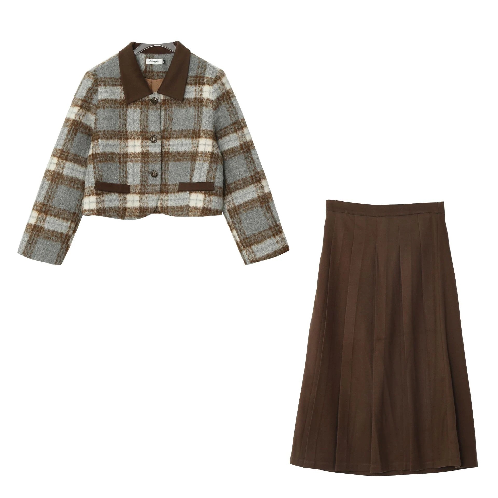 【ぽちゃまに】 秋冬 ニットセット プリーツスカート 大きいサイズ 体型カバー レディース セットアップ メガ割
