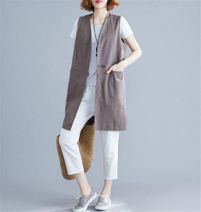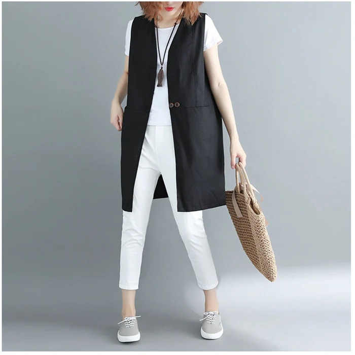 ベスト レディース 春 リネンライクロングジレ ジレ ロングコートノースリーブ ロングジレ トレンチ