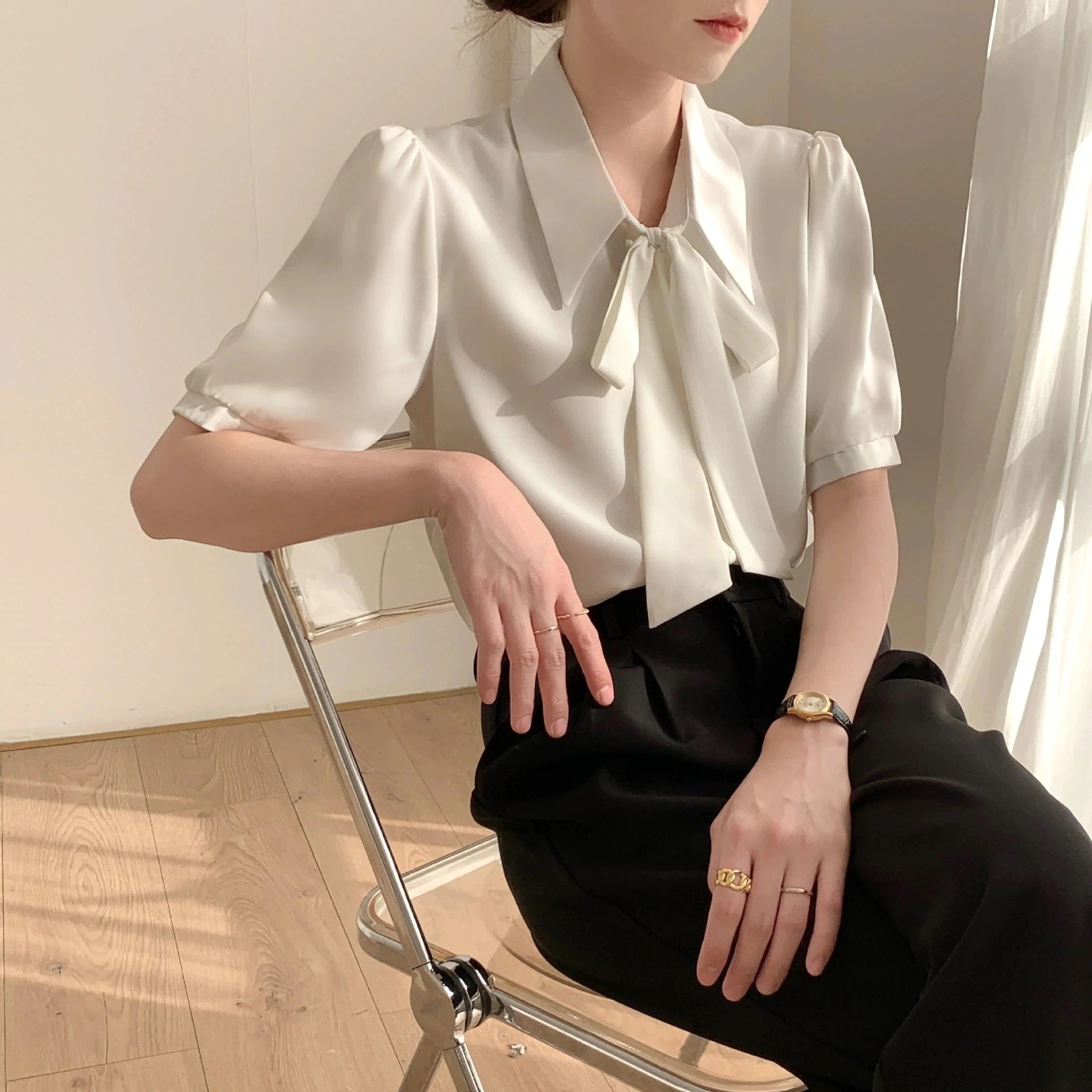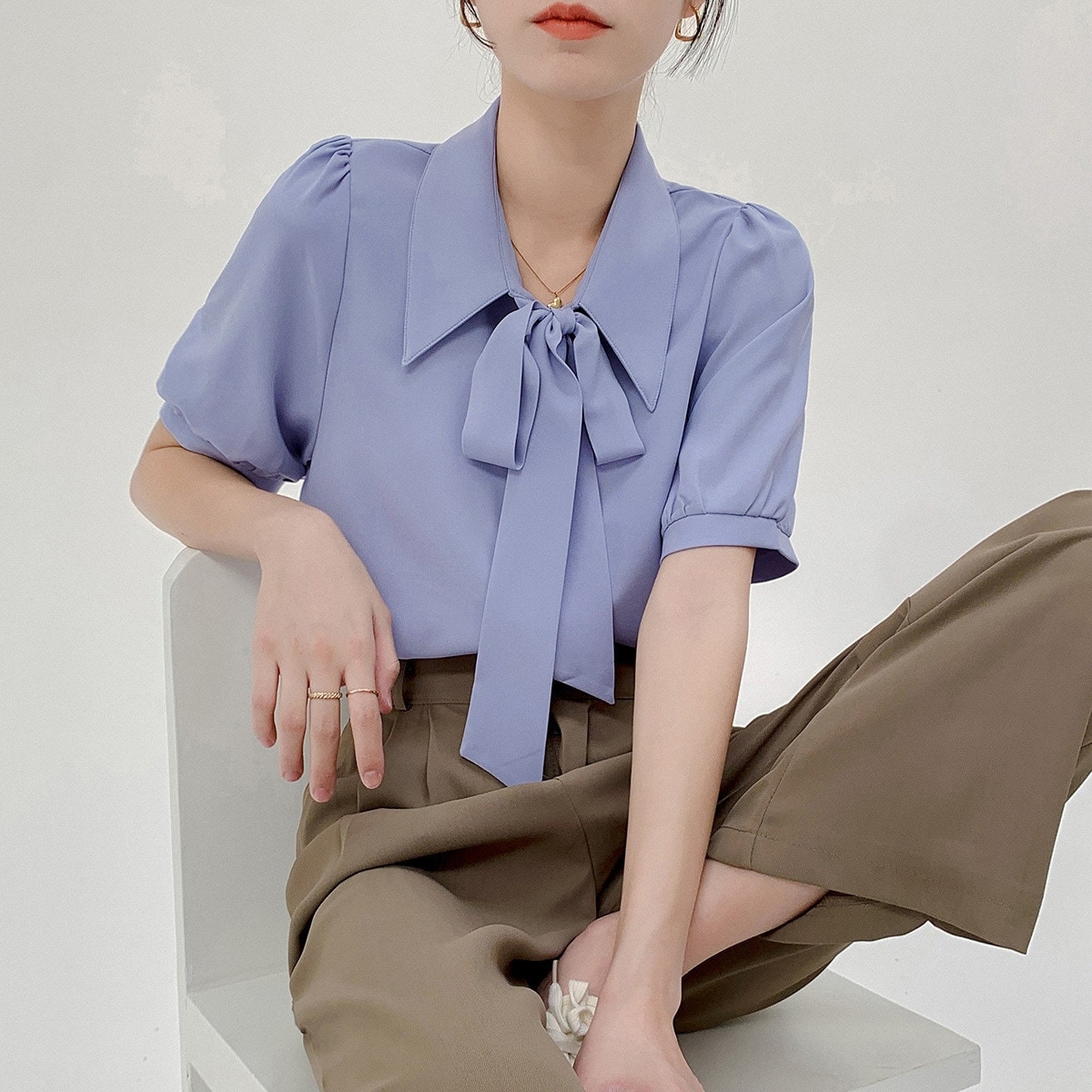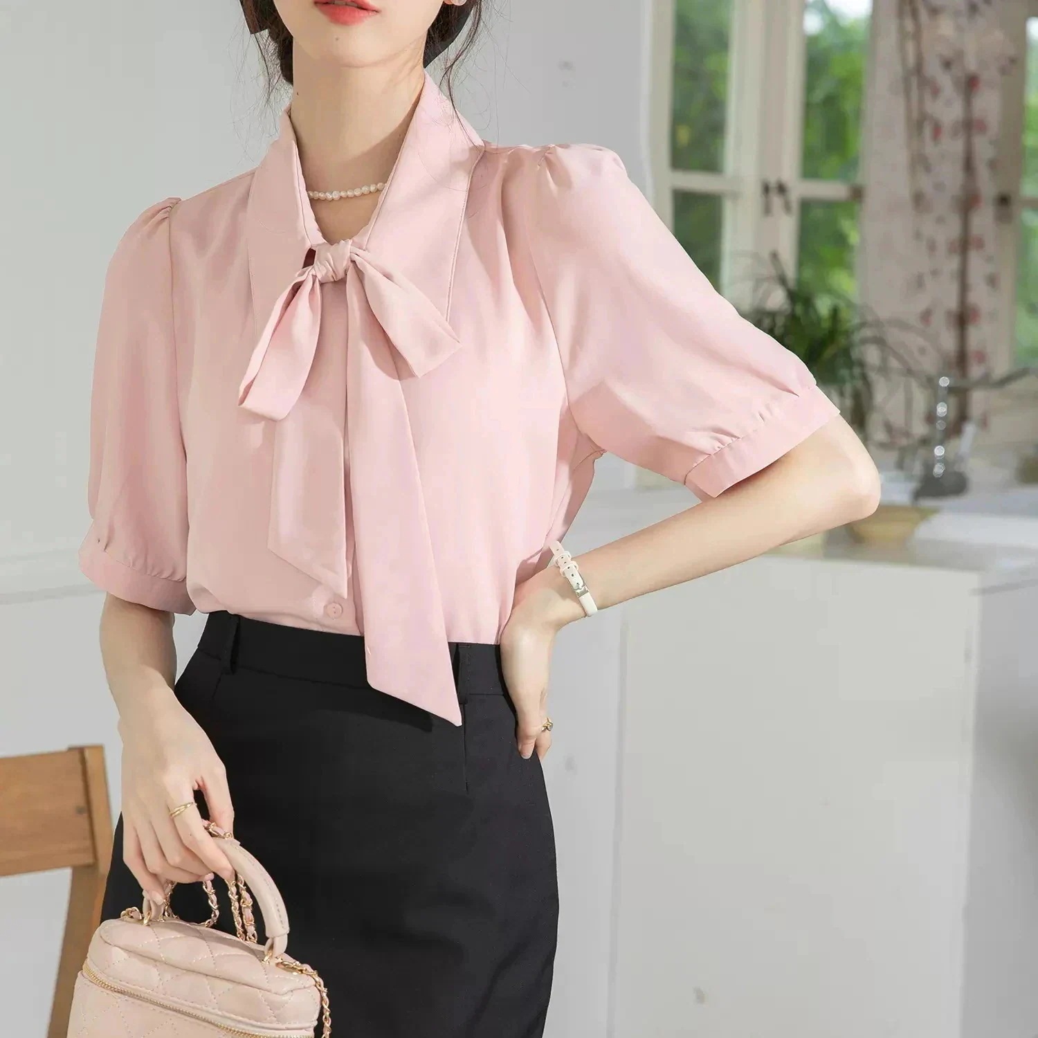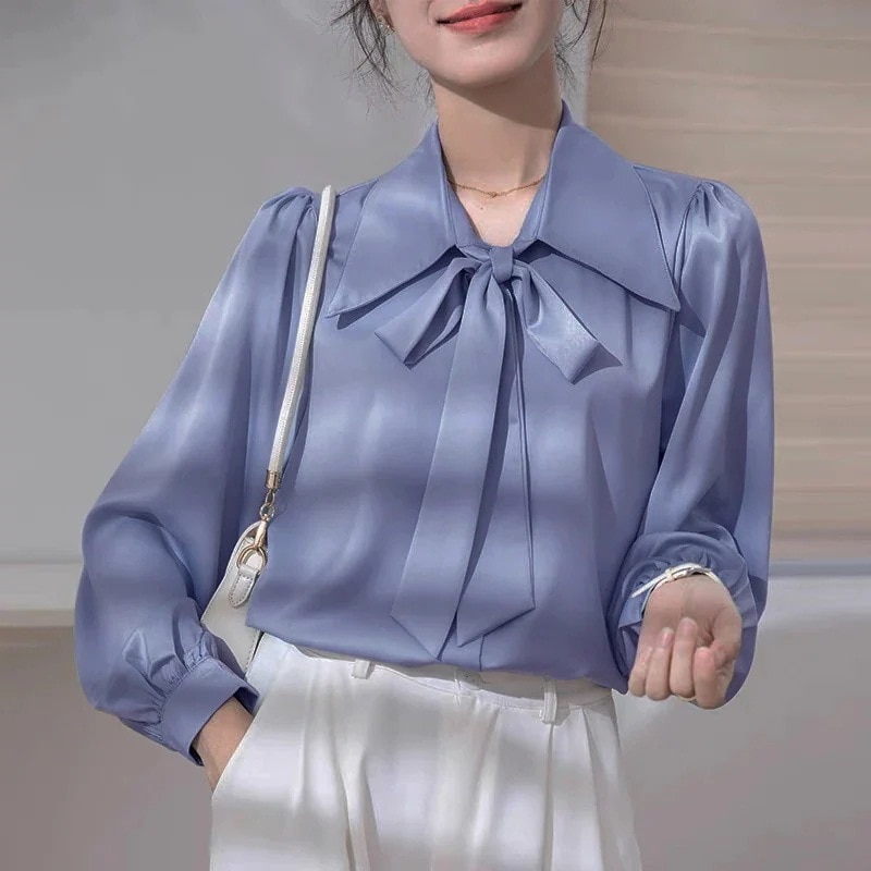 Tシャツ 韓国 気質 長袖シャツレディースブラウス シフォンシャツ 蝶結び 半袖 インナー レディース フォーマル ボウタイ チュニック トップス リボンタイ