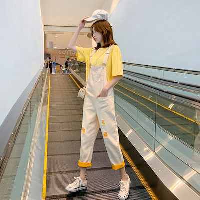 レディース デニムパンツ サロペット 韓国ファッション ゆったり ワイドパンツ 破れ オーバーオール