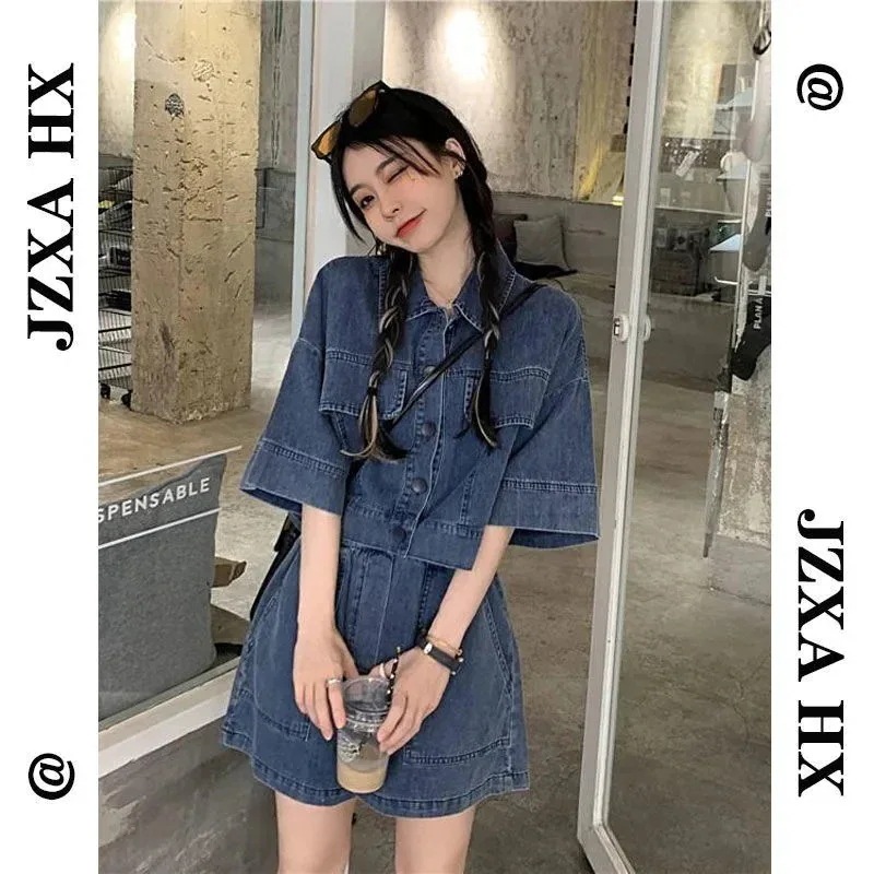 「夏のデニム」デニムセットアップ / ワンピース 大きいサイズ 上下セット 半袖 ショートパンツ 夏 レディース 学生 デニムセット カジュアル デニムジャケット メガ割