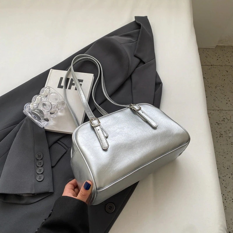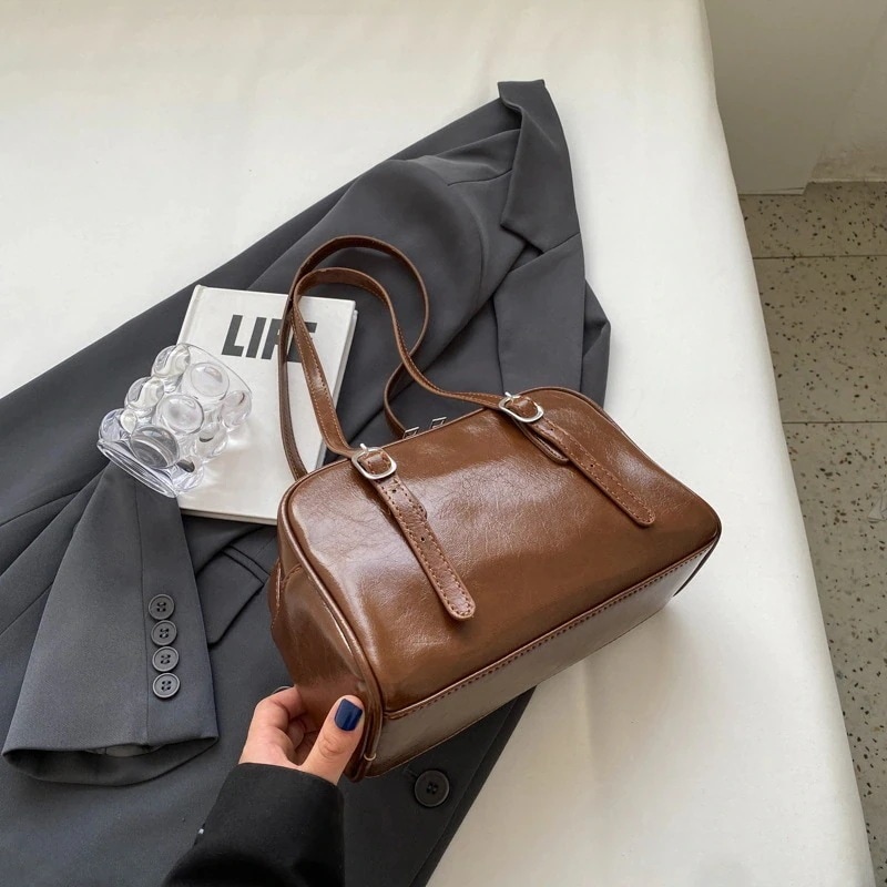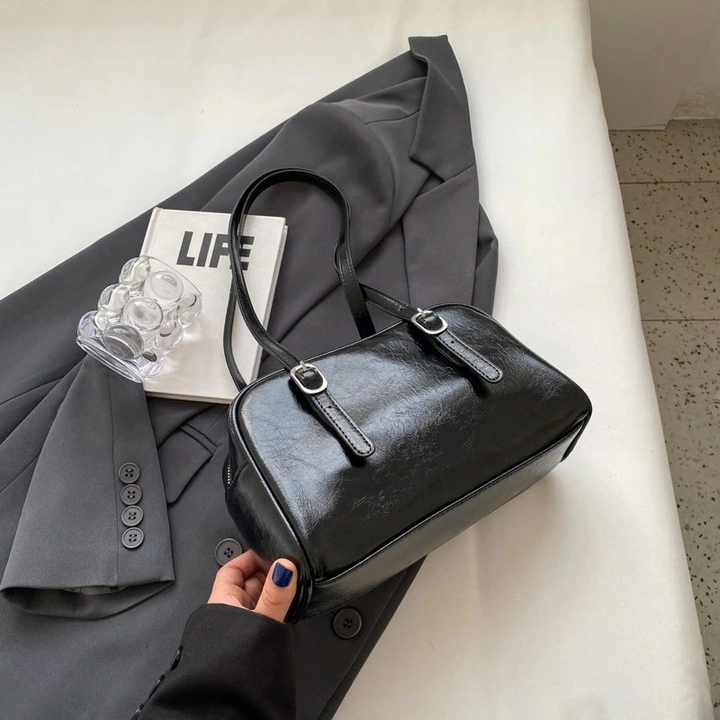 レトロバッグレディース2025新作韓国風ファッションショルダー脇バッグニッチデザインポータブルボストンバッグ