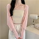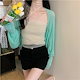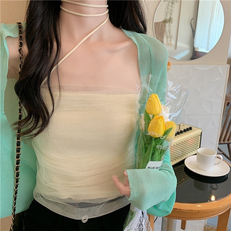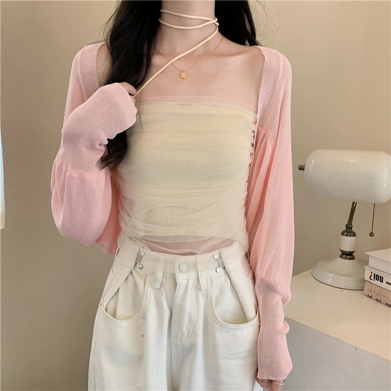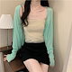 2025 春夏 韓国 ショート丈 薄手 カーディガントップス 長袖 紫外線対策 レディース UVカット 冷房羽織り加工きれいめ透けニット オフィスOLネックカジュアル ファッション韓国