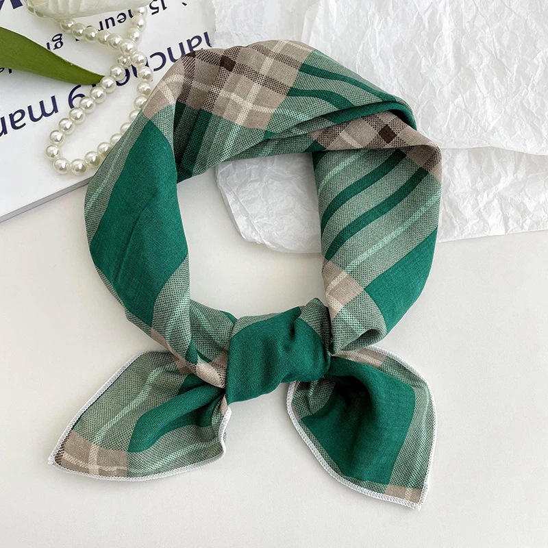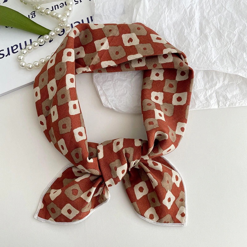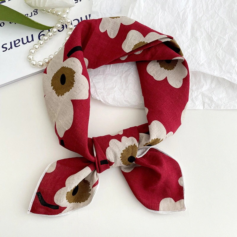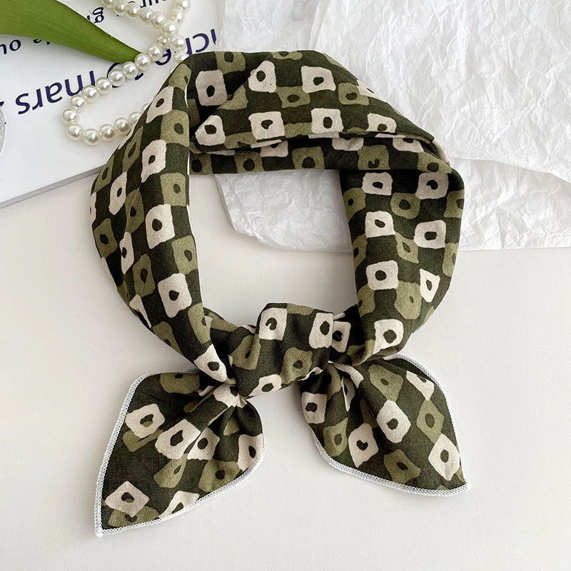 綿麻の小さな手ぬぐい(女性用 春夏新作) 韓国風 爽やかな小花柄のエレガントな首元保護用小スカーフヘアバンドヘッドスカーフシルクスカーフ