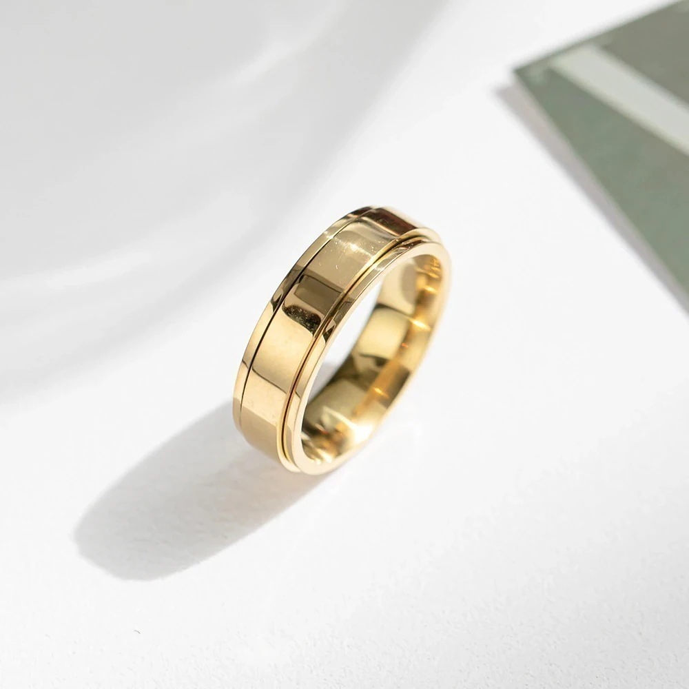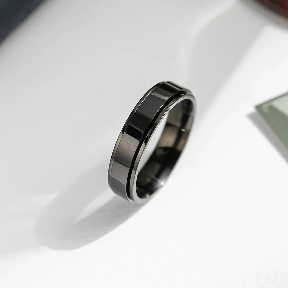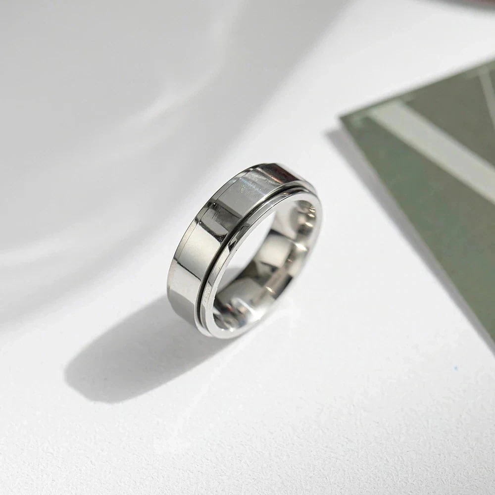 【今年も人気!指輪】シンプルな光沢のあるプレーンリングステンレス鋼回転リングリングの韓国語バージョン トレンディなニッチデザインのカップルリング