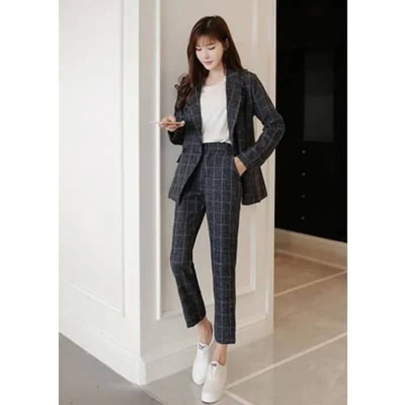 【急速出荷】パンツスーツ スーツ レディースパンツスーツ 2color チェック柄 入学式 フォーマル ママスーツ 卒業式 事務服 制服に 2点セット 通勤 春秋