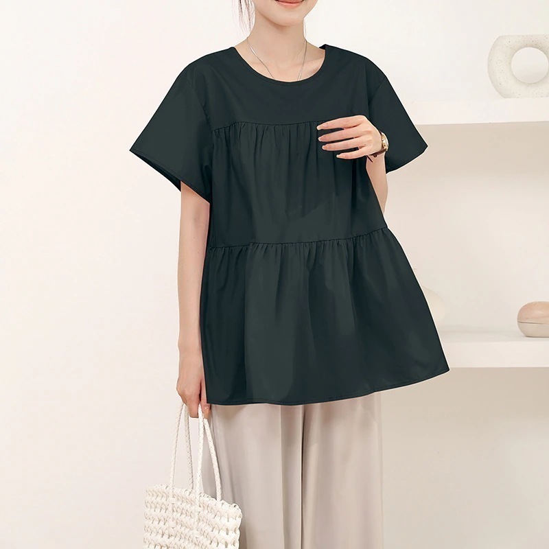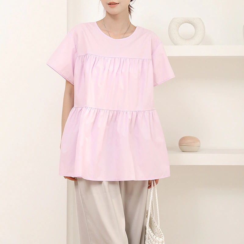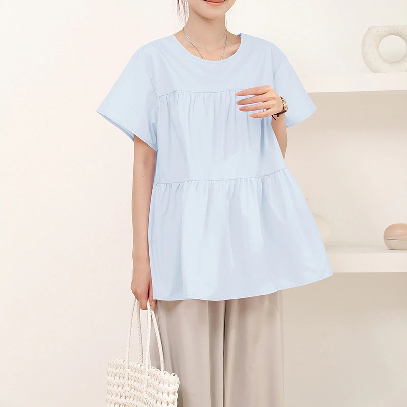 ブラウス フリル袖 半袖 トップス レディース フレアシャツ チュニック 2WAY 前後着用 ラウンドネック コットン 綿 きれいめ 二の腕カバー ゆったり シルエット 体型カバー
