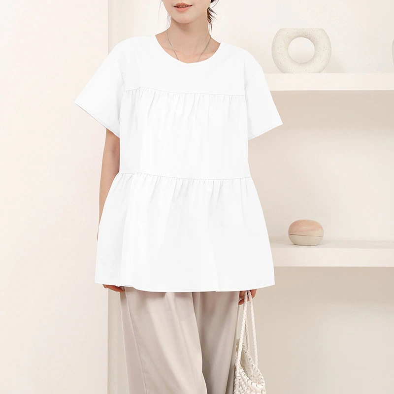 自然に華やかさを引き立てる綿ブラウス。