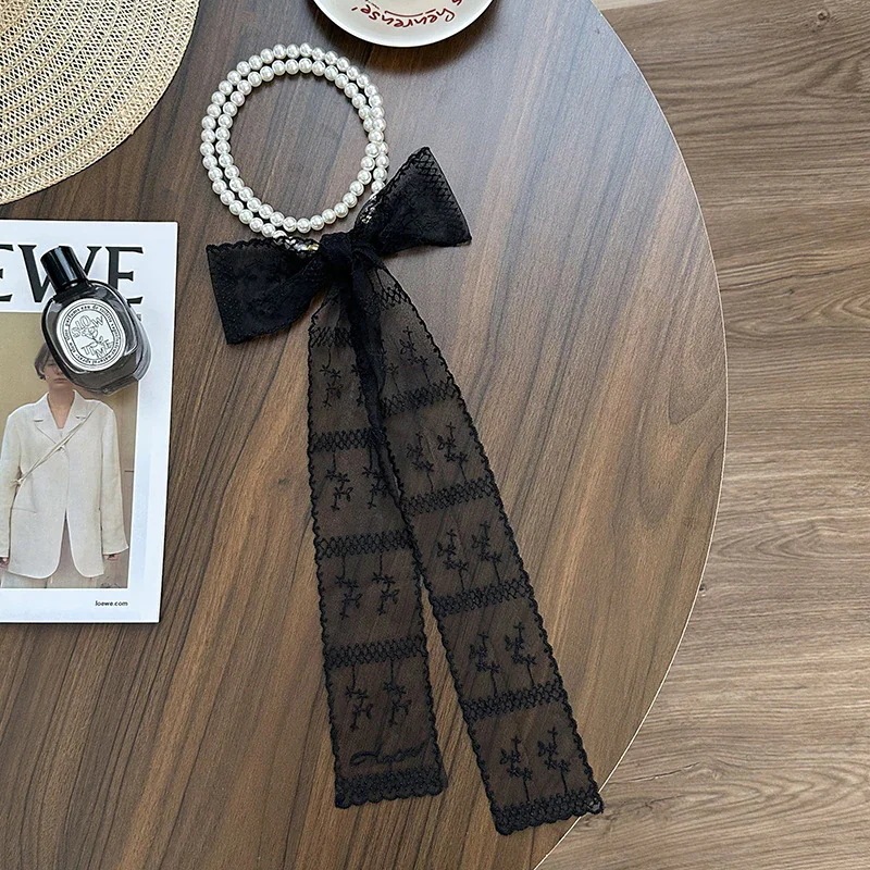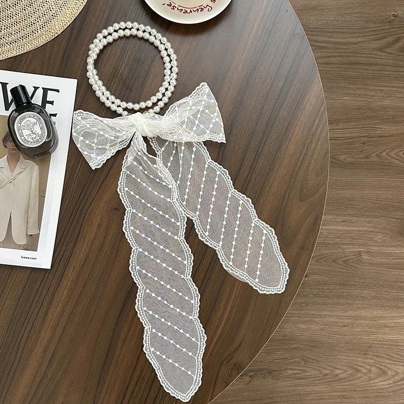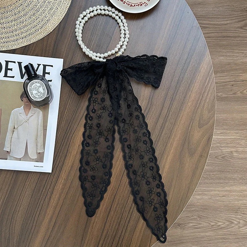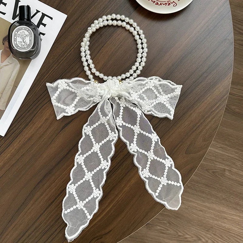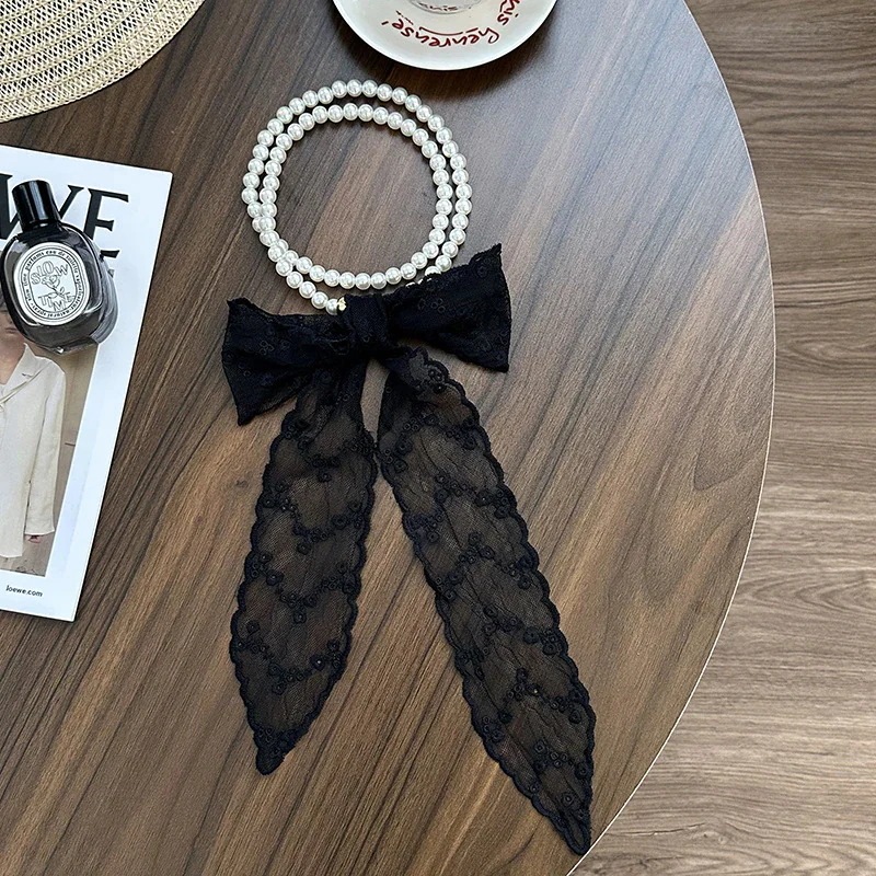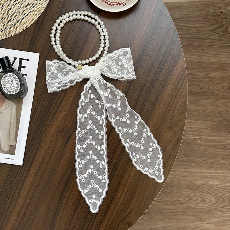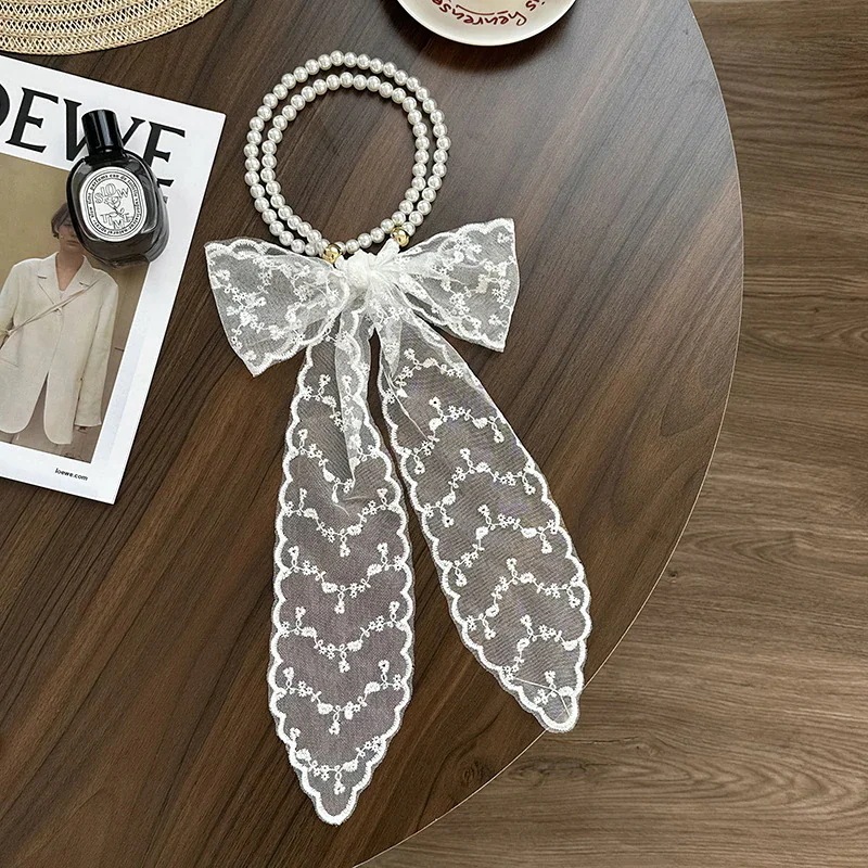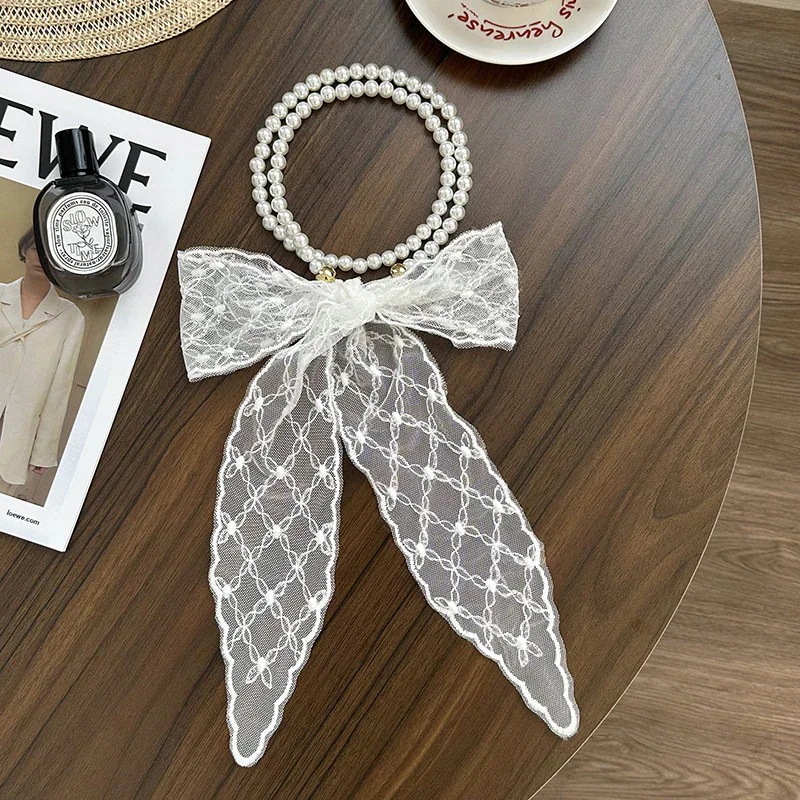 パールネックレス新しいフランス鎖骨チェーンレースシルクスカーフ プレミアム感ヘッドバンドヘアネクタイヘア多目的ウエストチェーンひらひらリボンスカーフ
