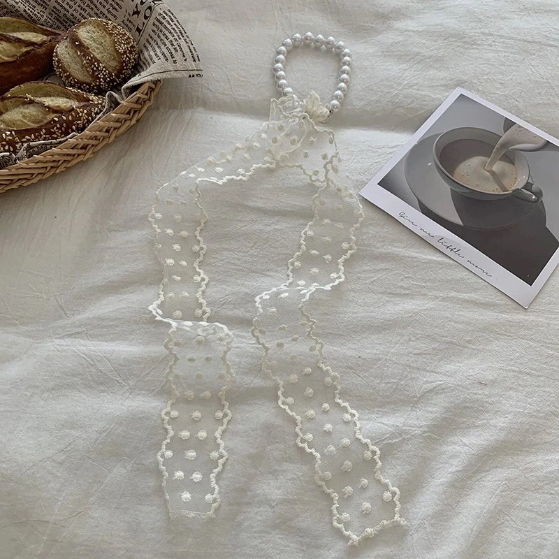 レースシルクのスカーフ女性韓国百 春と秋のファッションネックスカーフヘアバンドパールネックレスタイヘアバンドフローティングリボンスカーフ