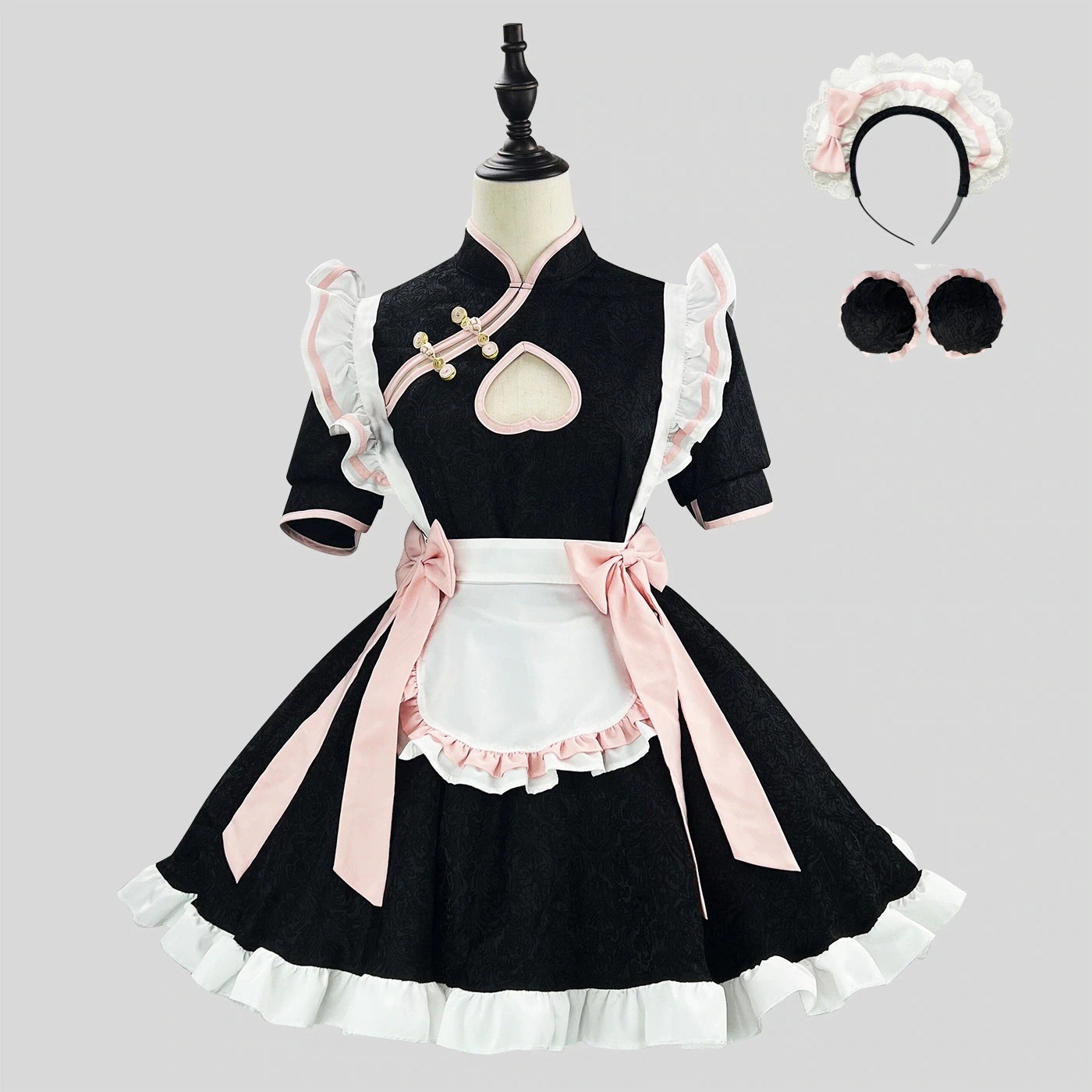 新作 ~ 中華風 メイド服 ロリータ コス 透かし 新 中国風 チャイナドレス メイド 制服 セット ワンピース