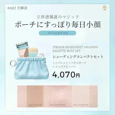 マットハイライトはジュディードールの方が白み、ピンクみが強いかな?という感じです。ハイライトはTimageの方が自然で静かな輝きという感じなので、大人世代にはTimage,輝き強めならジュディードールという印象です。 -
